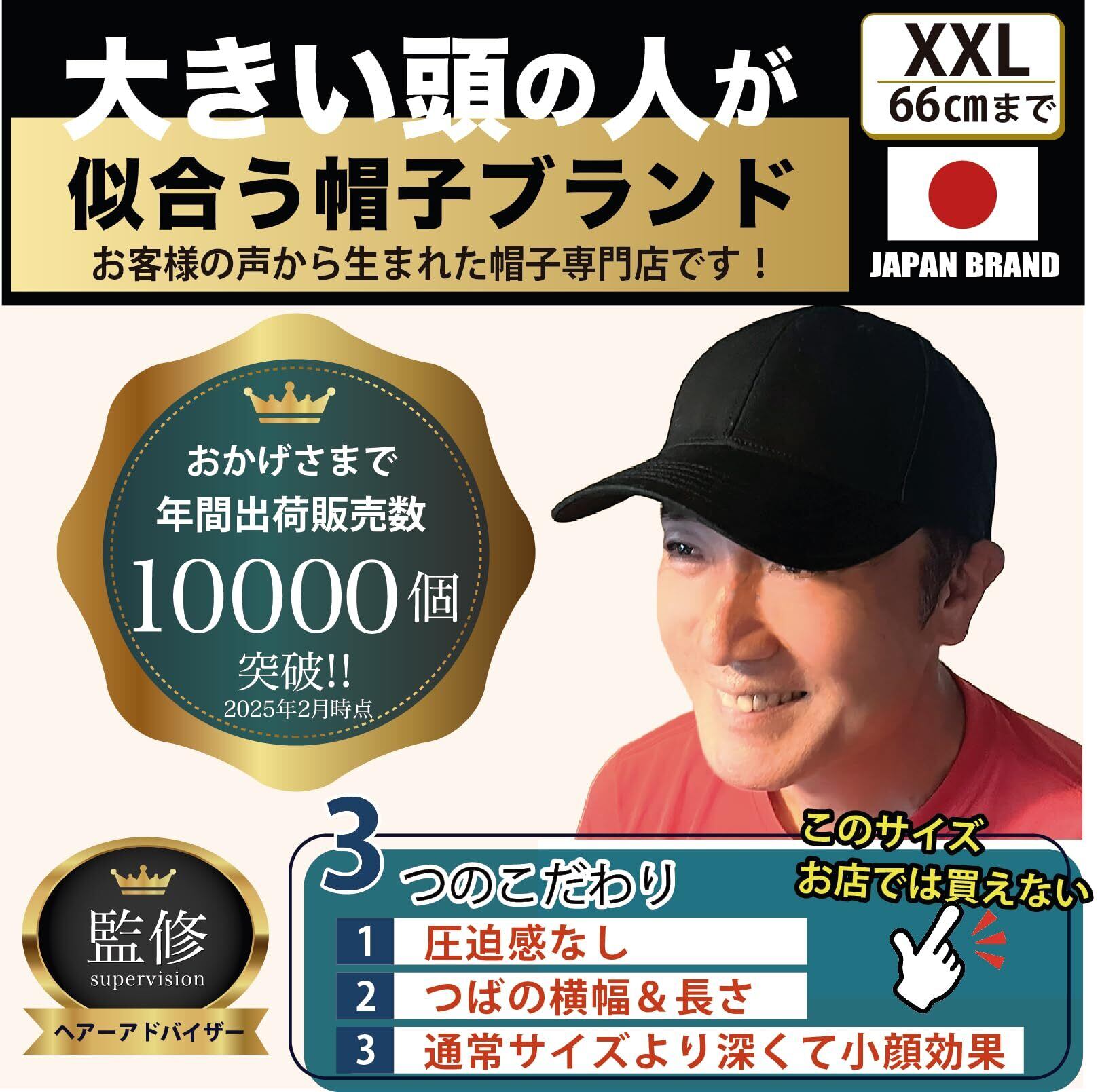 特大サイズ(60-66cm)で抜群の装着感。