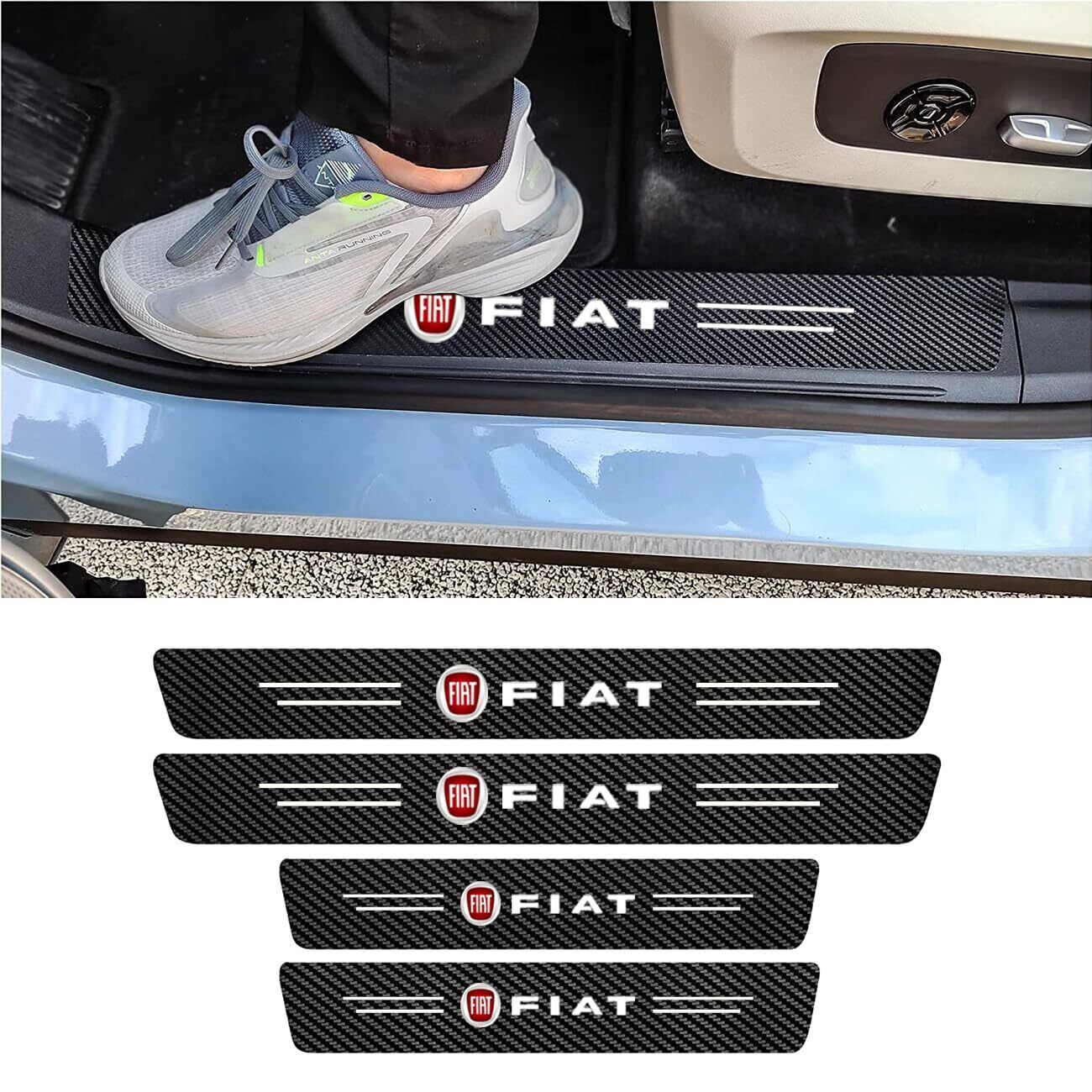 FIAT サイドステップガード フィアット 500 595 など全シリーズ対応 ドアガードステッカー レザー製 高級素材 傷隠し 滑り止めキズ防止 汚れ防止 4点セット (フィアット)