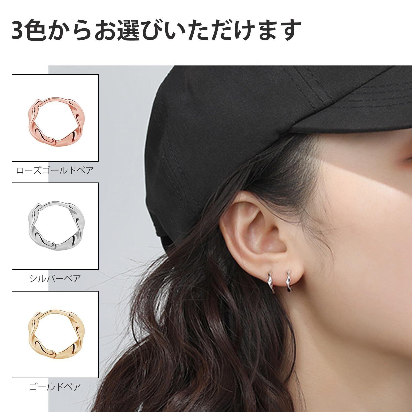 TweezerGuru フープピアス レディース 小さめ 金属アレルギー ゴールド ツイストピアス シルバー925 シルバー ピンクゴールド 人気 かわいい おしゃれ レディース リングピアス