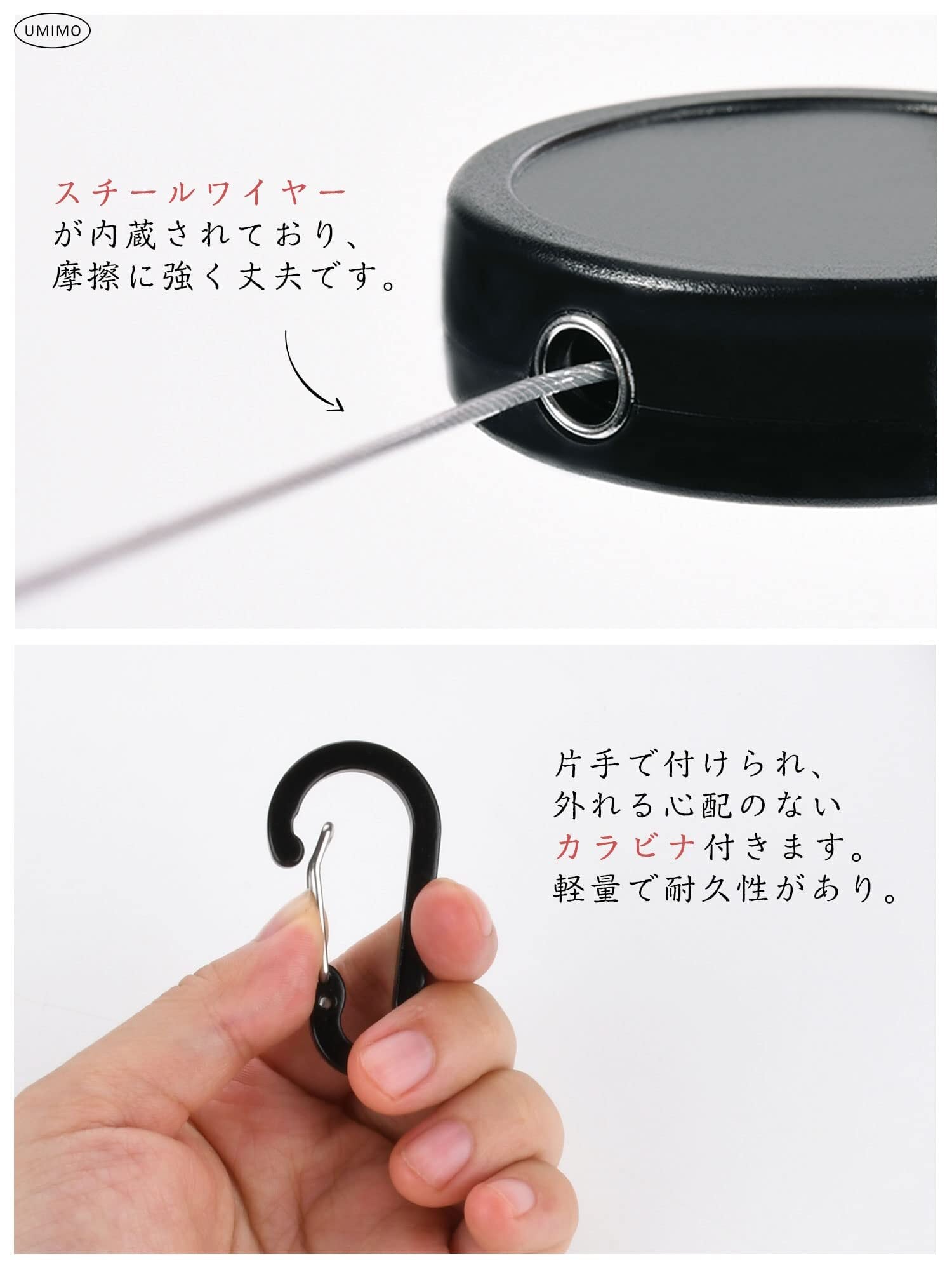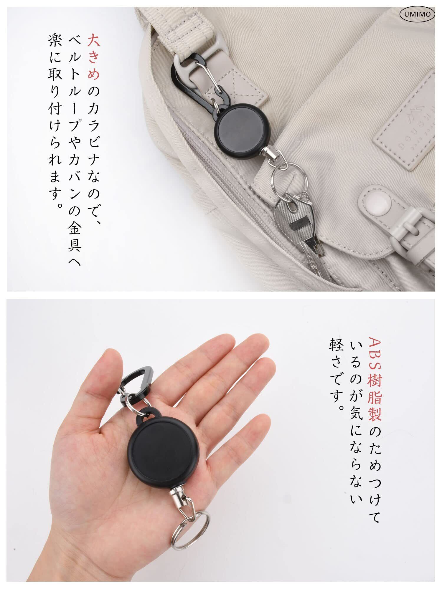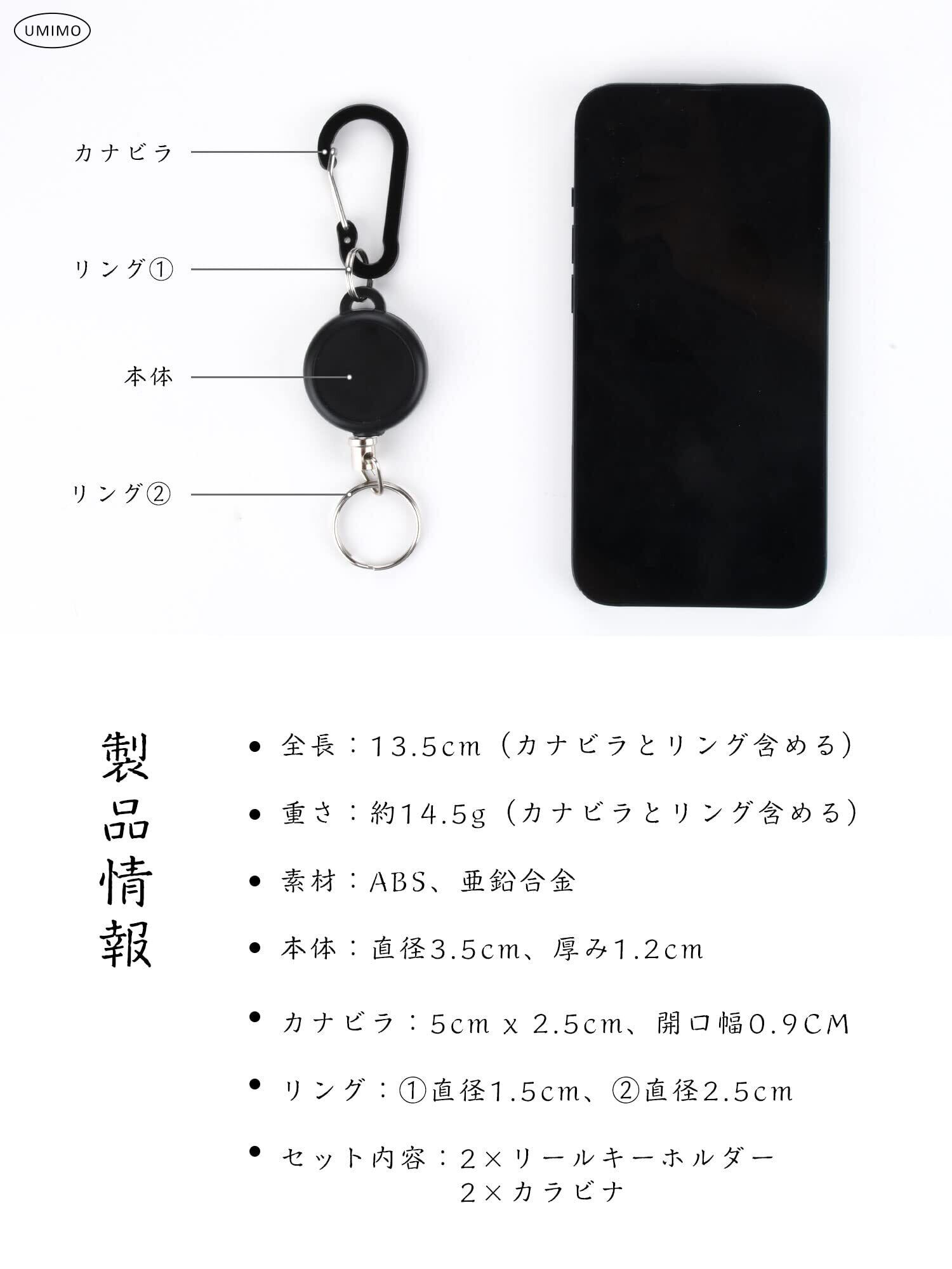 UMIMO リールキーホルダー カラビナ付 キーリール 金属ワイヤー 最長65cm 伸びる 紛失防止 2個セット 安心の12ヶ月品質保証
