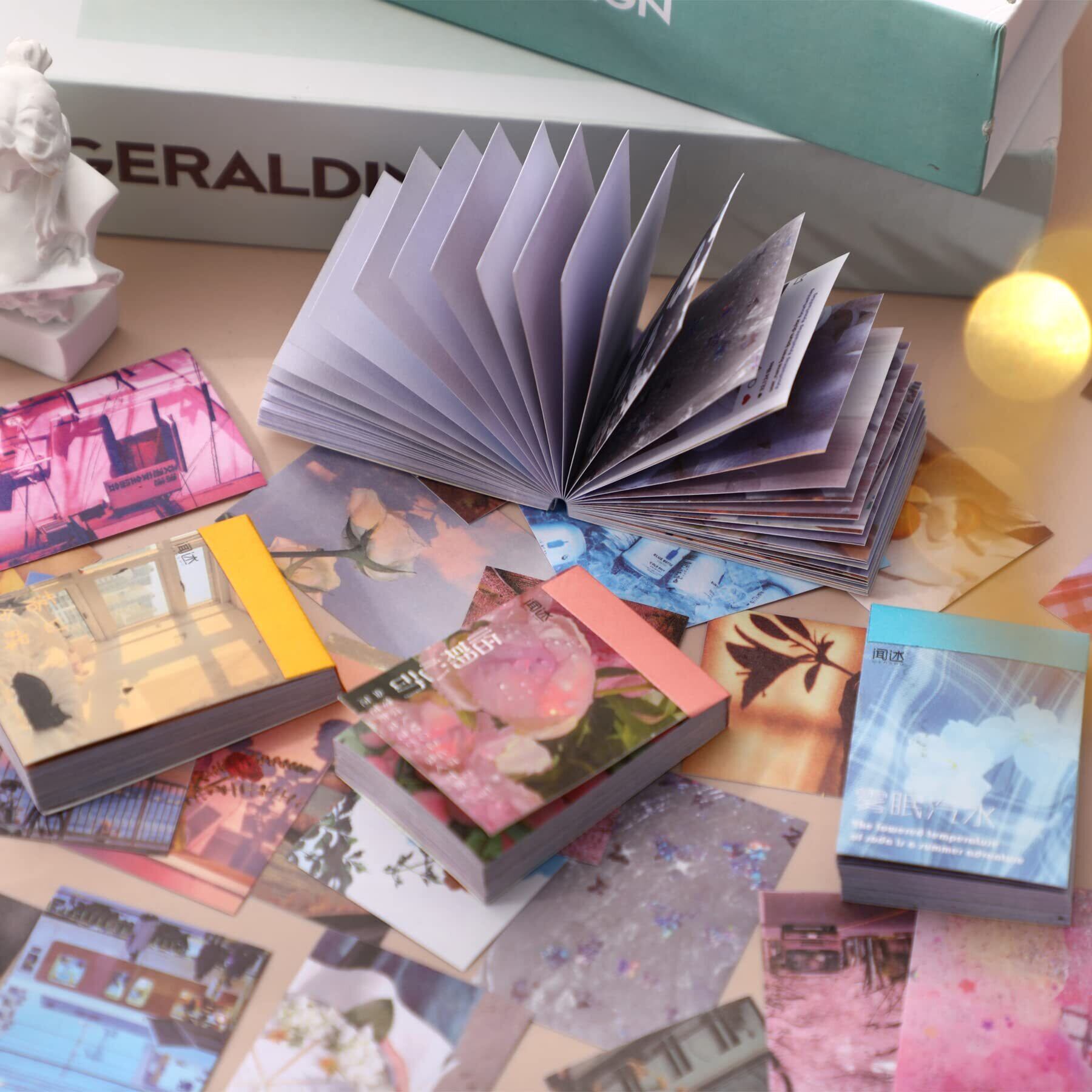 【商品内容】4冊のコラージュシールブックが入っており、各冊にも50枚、合計200枚のフレークシールがあります。大量なセットで長く使えます。シールのサイズが4cmX6cmで、持ち運びにも便利です。