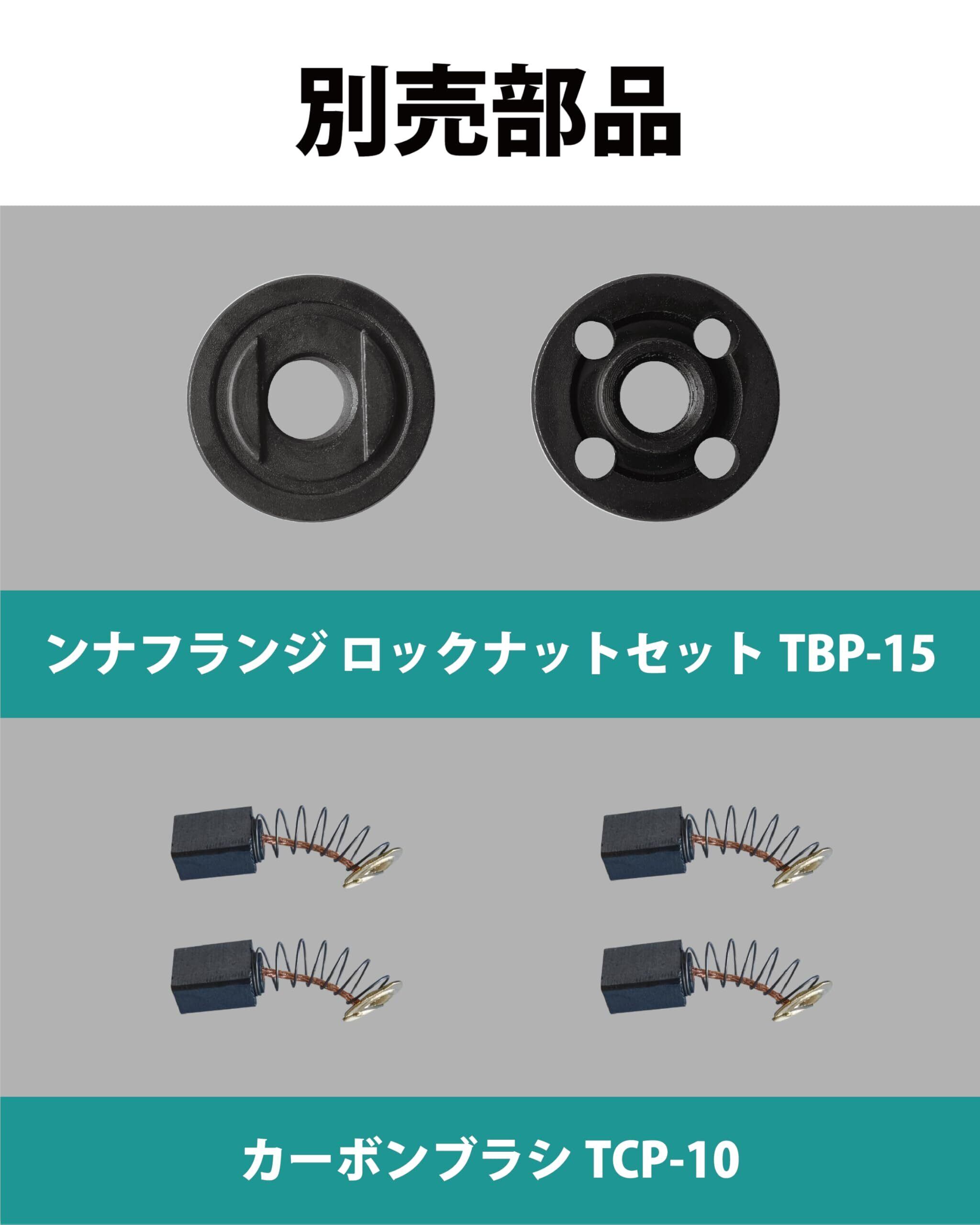 電圧:AC100V、周波数:50/60Hz、消費電力:600W、電流:6.3A、 ディスクグラインダー 変速 回転数:約3,000~11,000min-1。