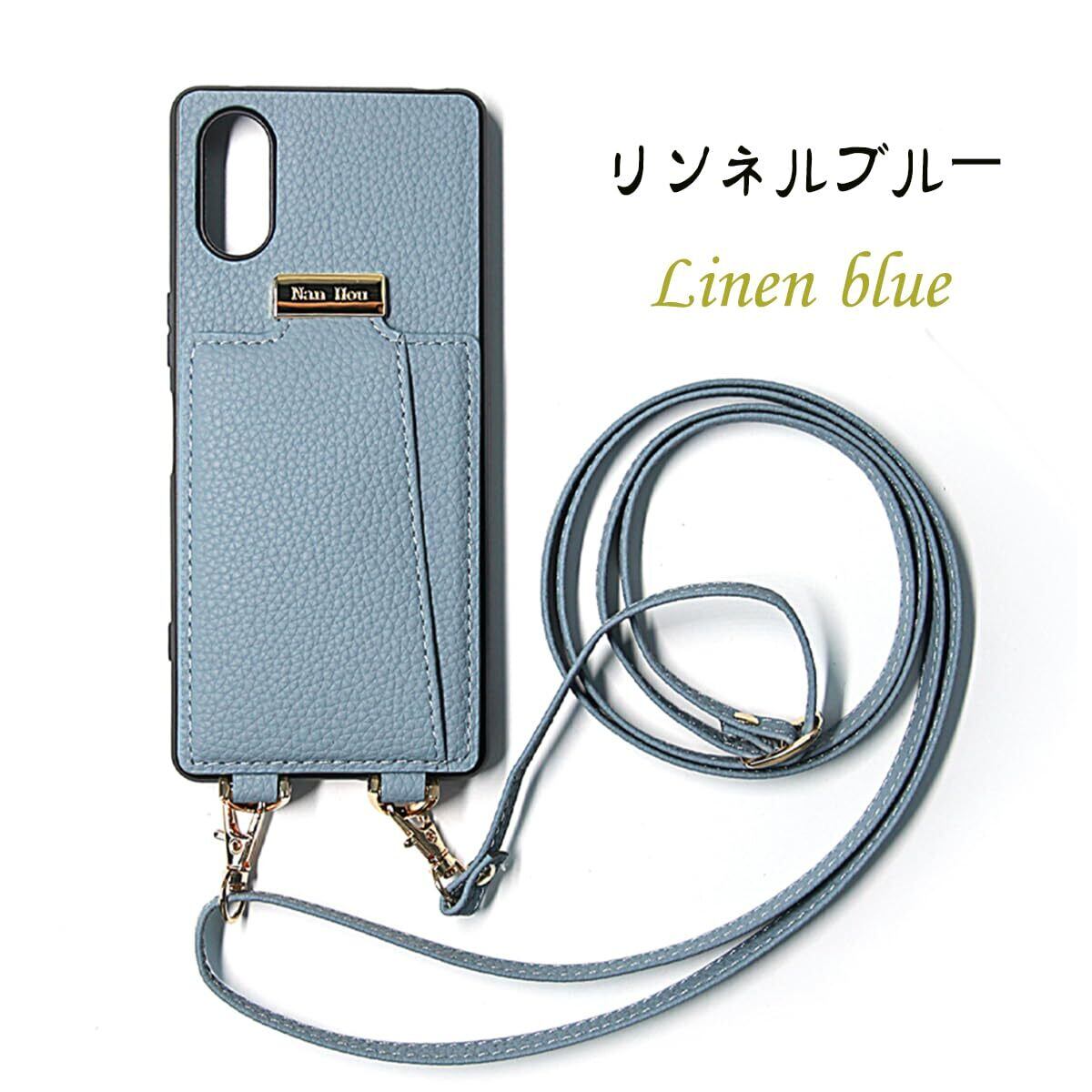 NanHou Xperia 5V ケース 手帳型 高質PU(超繊皮革)ファッション SO-53D SOG12 手帳型 斜めショルダーストラップ付き(長さ調整可能)耐衝撃 保護 背面鏡付き 人気 携帯カバー 女性 上品 カードポケット スタンド機能 リストバンド エクスペリア 5V ケース - リンネルブルー