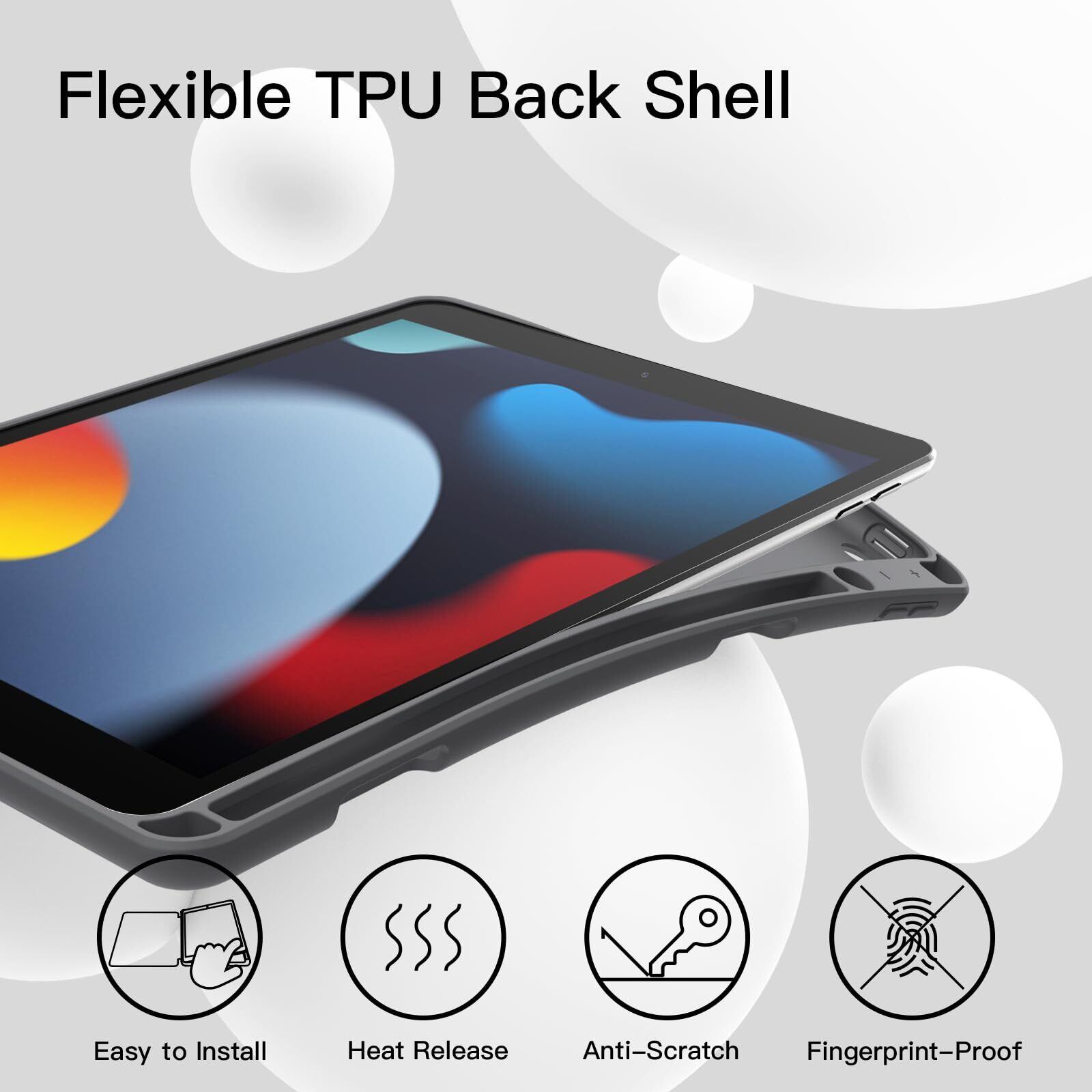 JEDirect iPad 10.2インチ ケース (2021/2020/2019モデル、第9/8/7世代用) Pencilホルダー付き ソフトTPUバック スリム保護カバー オートウェイクアップ/スリープ機能付き (ダークグレー)