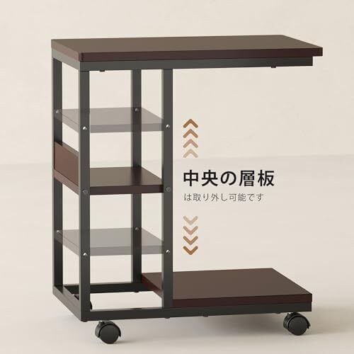 YeTom サイドテーブル キャスター付き コの字型ベッド サイドテーブル ソファサイドテーブル リビングサイドテーブル 可移動ナイトテーブル 層板は調節可能 幅48×奥行30×高さ60cm(キャスター約5CM) ダークブラウン