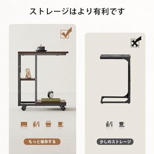 【コ字型テーブル】サイドテーブル キャスター付きはコ字型、ソファやベッドの下のスペースに入れ、隙間に差し込んでも使えます。ソファのサイドテーブルやリビングのサイドテーブルとしても使えます。