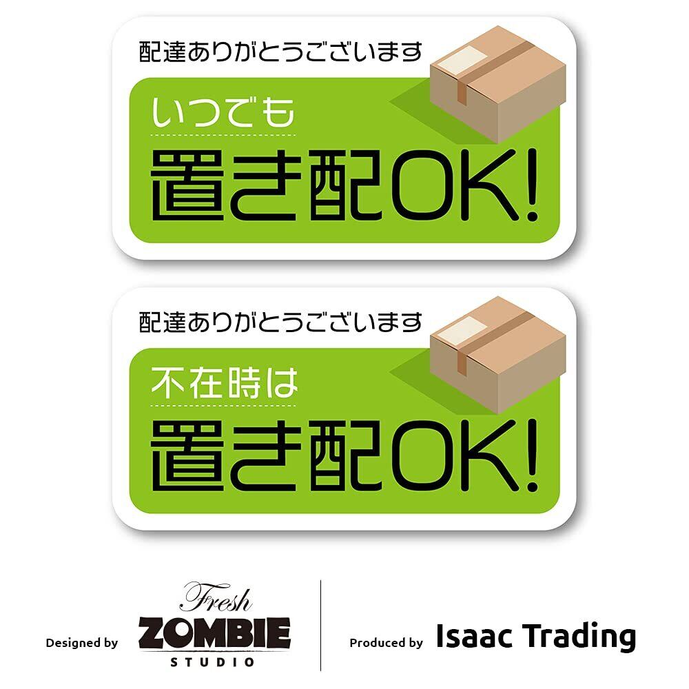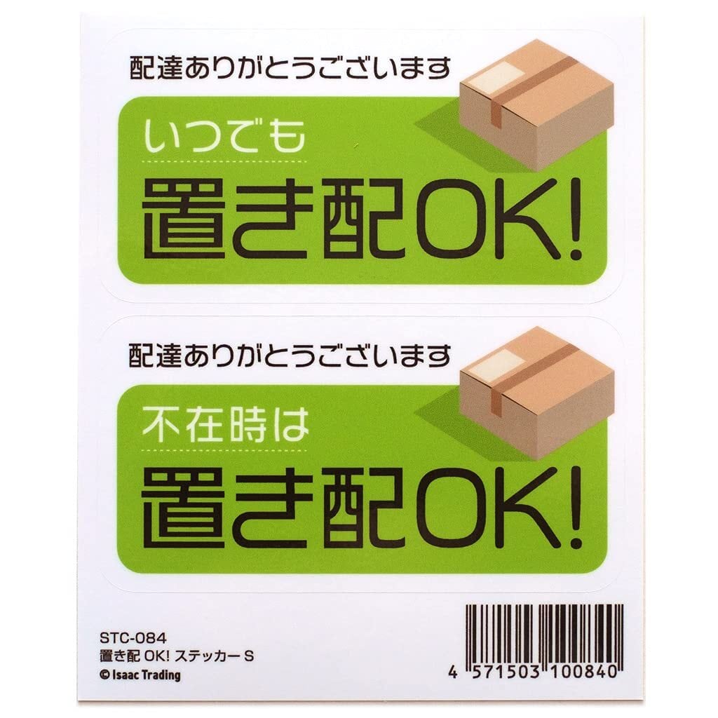 Isaac Trading 置き配OK ステッカーS 2種セット シール 耐水 耐候 宅配ボックス 宅配便 宅急便 郵便 配達物 荷物 不在 留守 置配 屋外 玄関 (84×44mm)