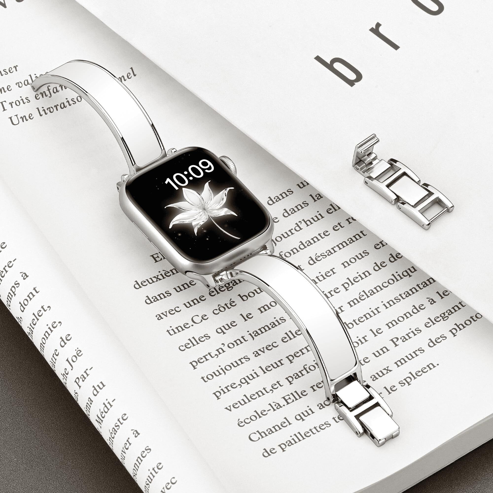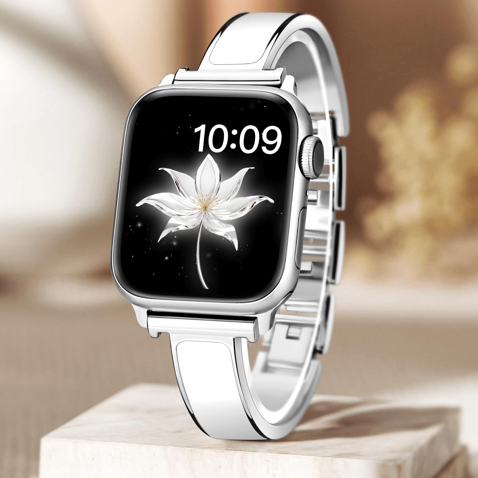 Bokoios おしゃれバングルバンド互换アップルウォッチ バンドレディース 46mm 45mm 44mm 42mm 49mm対応 かわいいスリムコンパチブルApple Watch バンド メタルアップルウォッチ ベルト 互换Apple Watch ベルト 調整簡単互换AppleWatch バンド iWatch Series 10 SE 9 8 7 6 5 4 3 Ultra-シルバー/ホワイト