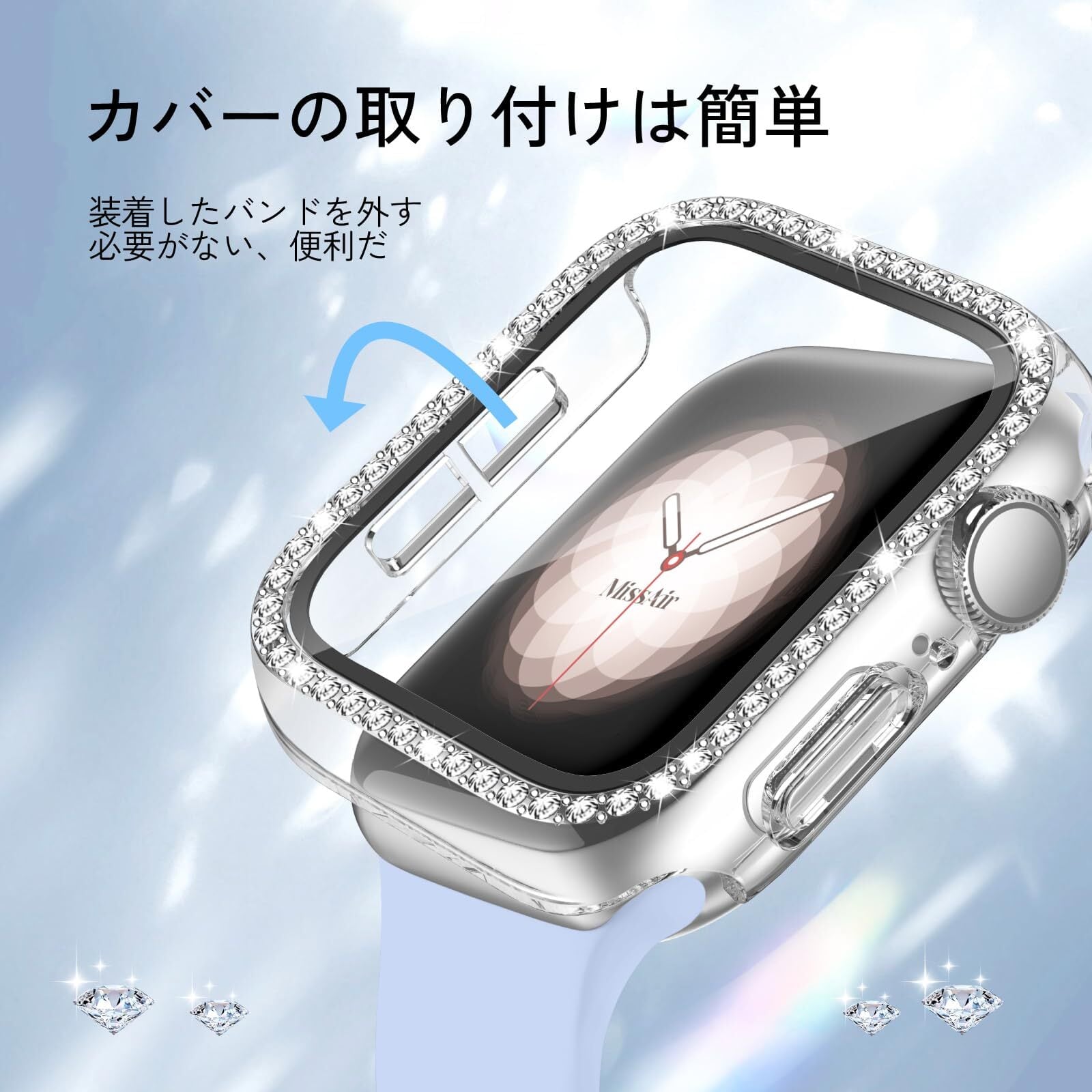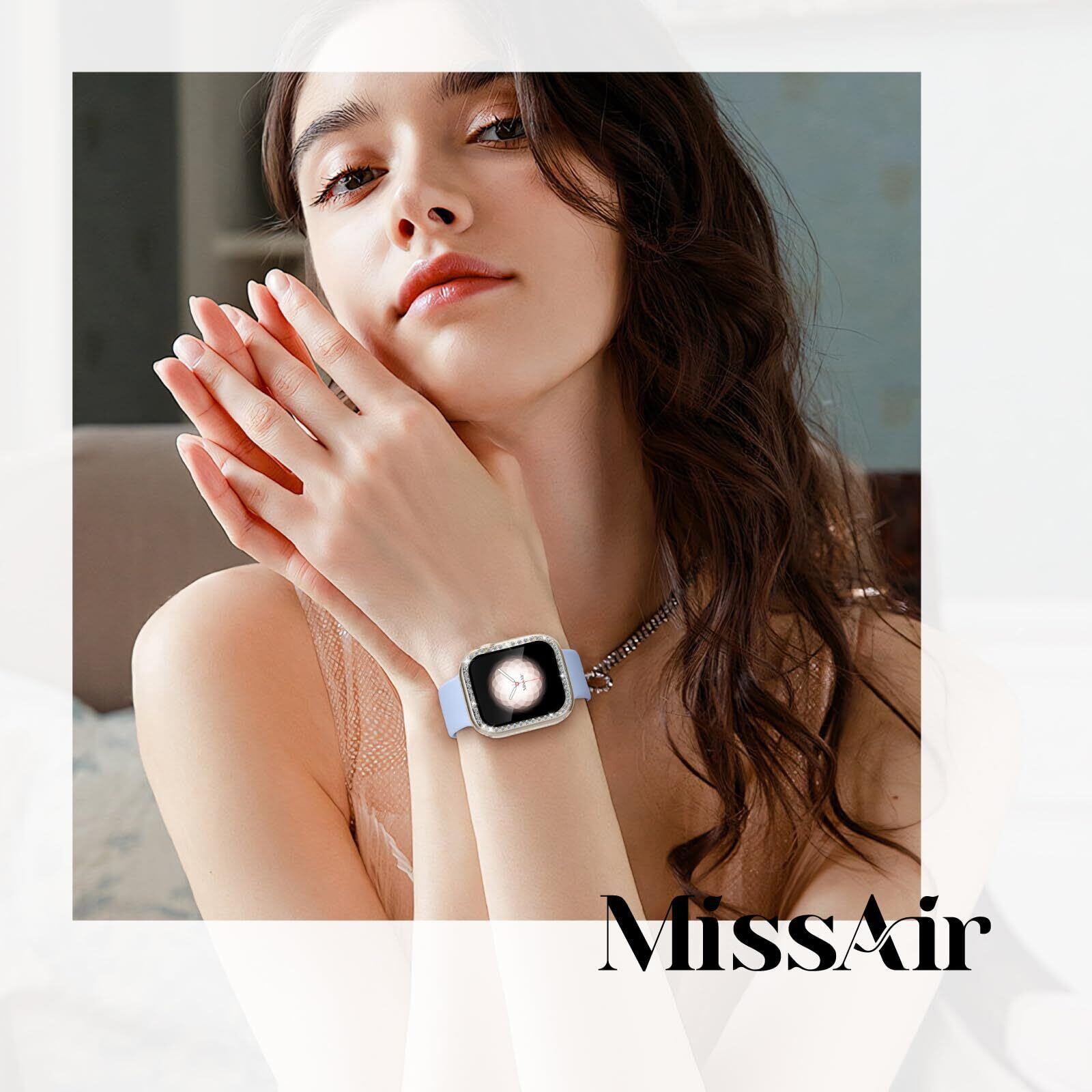 [Missair] コンパチブル Apple Watchと互換性のあるバンド シリコン アップルウォッチ バンド Apple Watch キラキラ カバー付き 互換用のApple Watch バンドとケース 一体型 全面保護 ダイヤモンド 光沢感 オシャレ レディース Series 9 8 7の41mmに対応