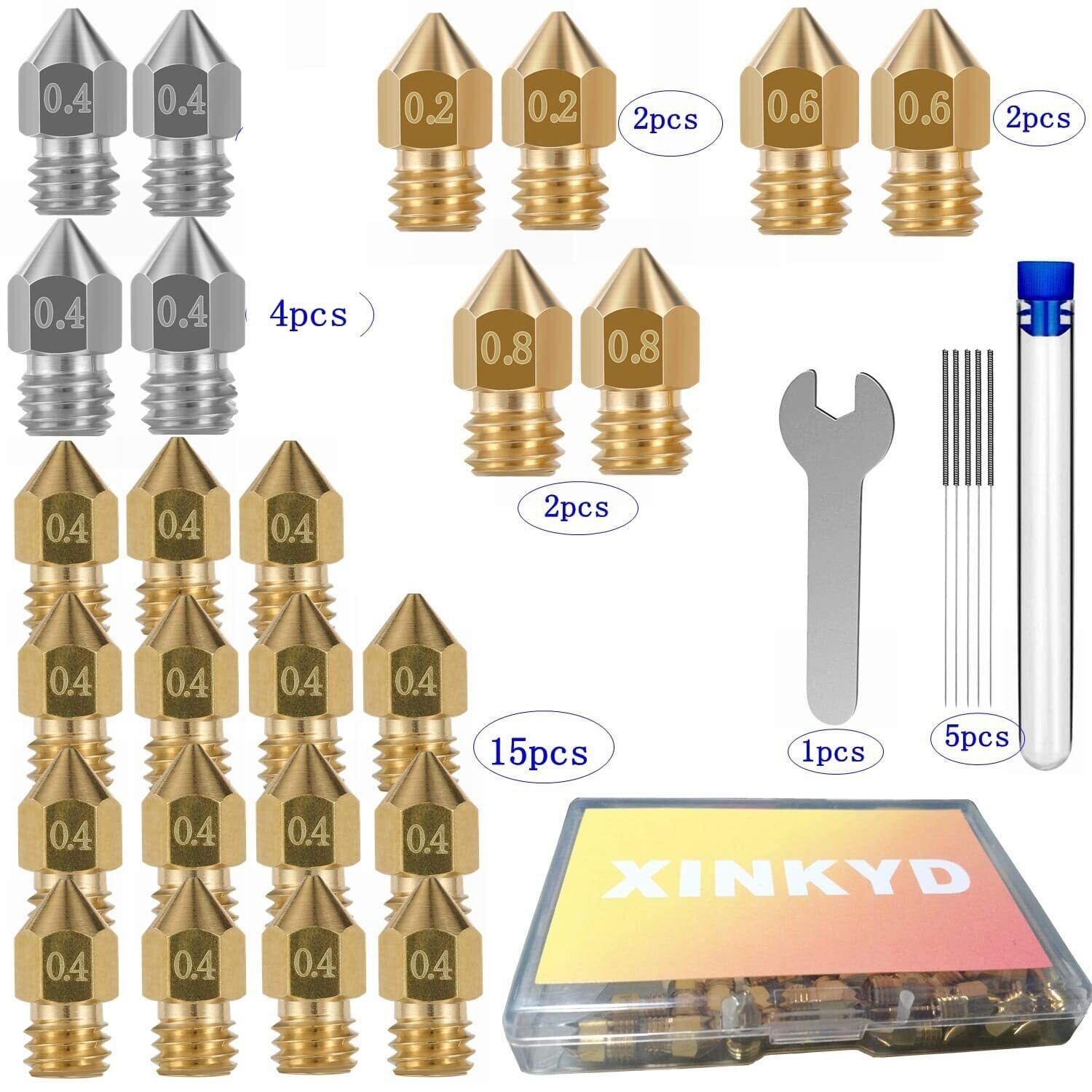 お買い得: パッケージには、15 x 0.4mm 真鍮ノズル、2 x 0.2mm 真鍮ノズル、2 x 0.6mm 真鍮ノズル、2 x 0.8mm 真鍮ノズル、4 x 0.4mm ステンレススチール、1 ノズルレンチ、1 収納ボックス、5ノズルクリーニングニードル、タイムリーな交換を容易にし、高品質の印刷を実現するのに十分な量、および強力な柔軟性と耐久性を備えた 5 x ノズルクリーニングニードル、破損することなくニードルをノズルに簡単に曲げる、ノズル詰まりのための優れたツール