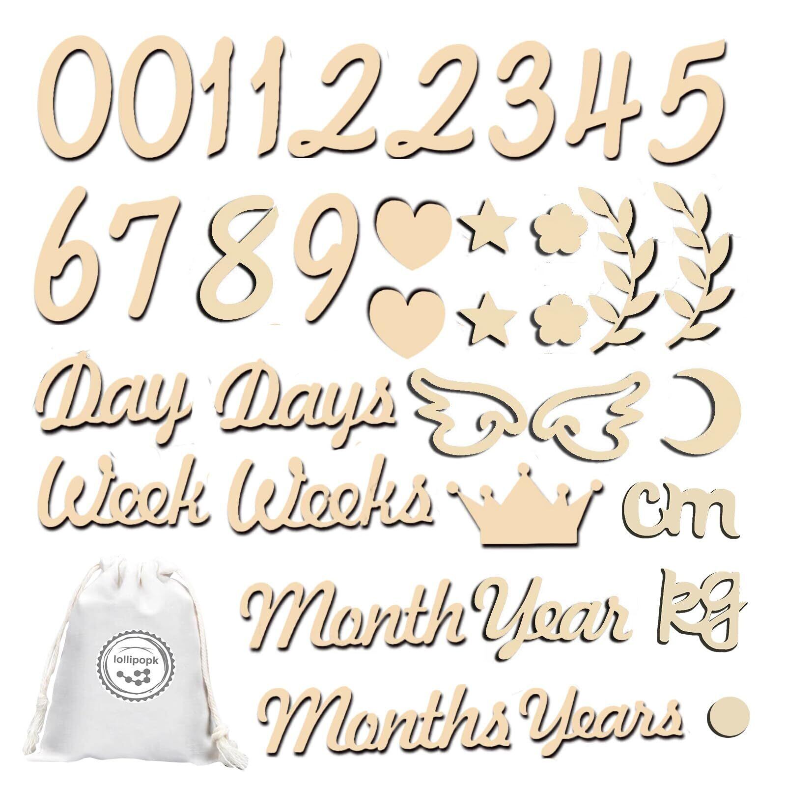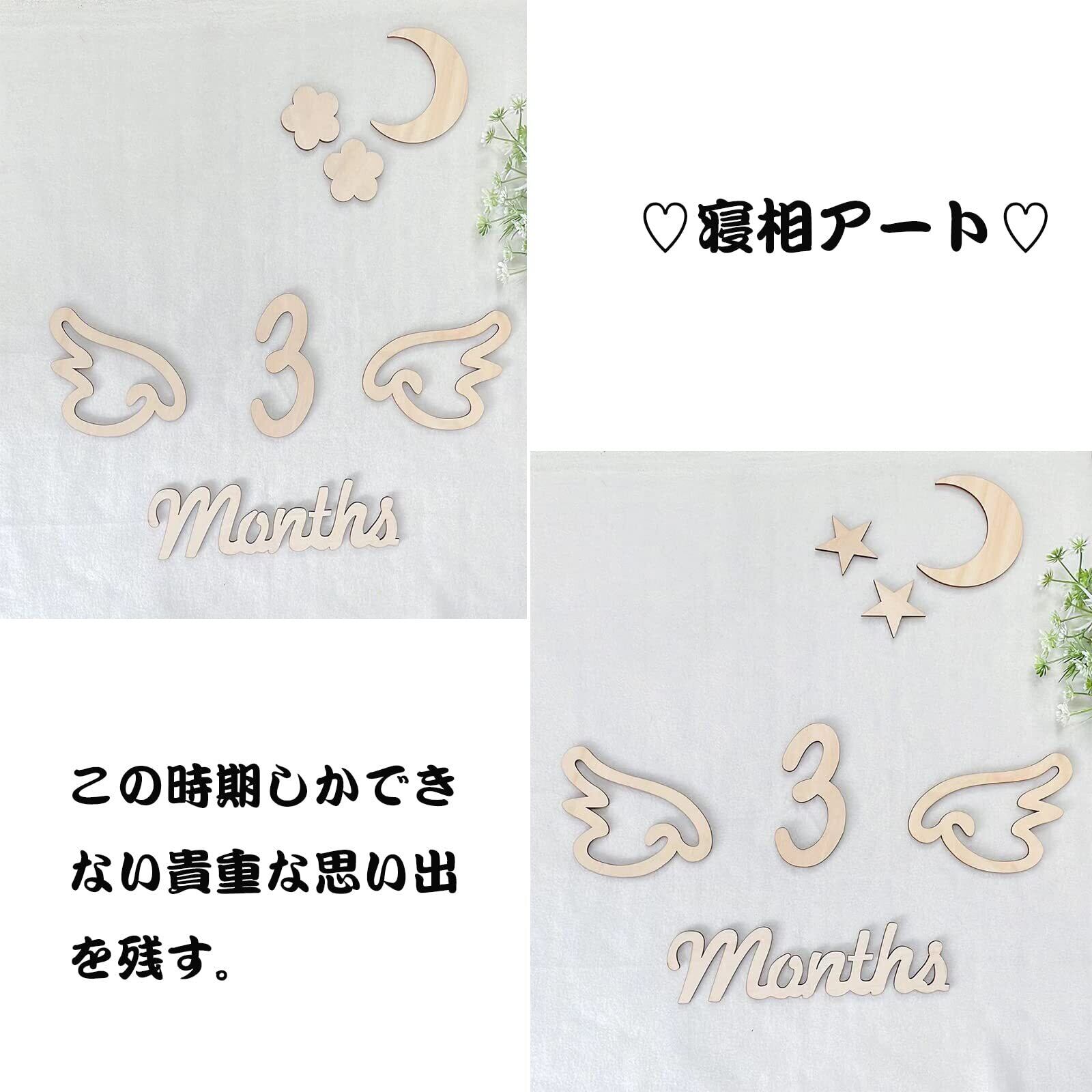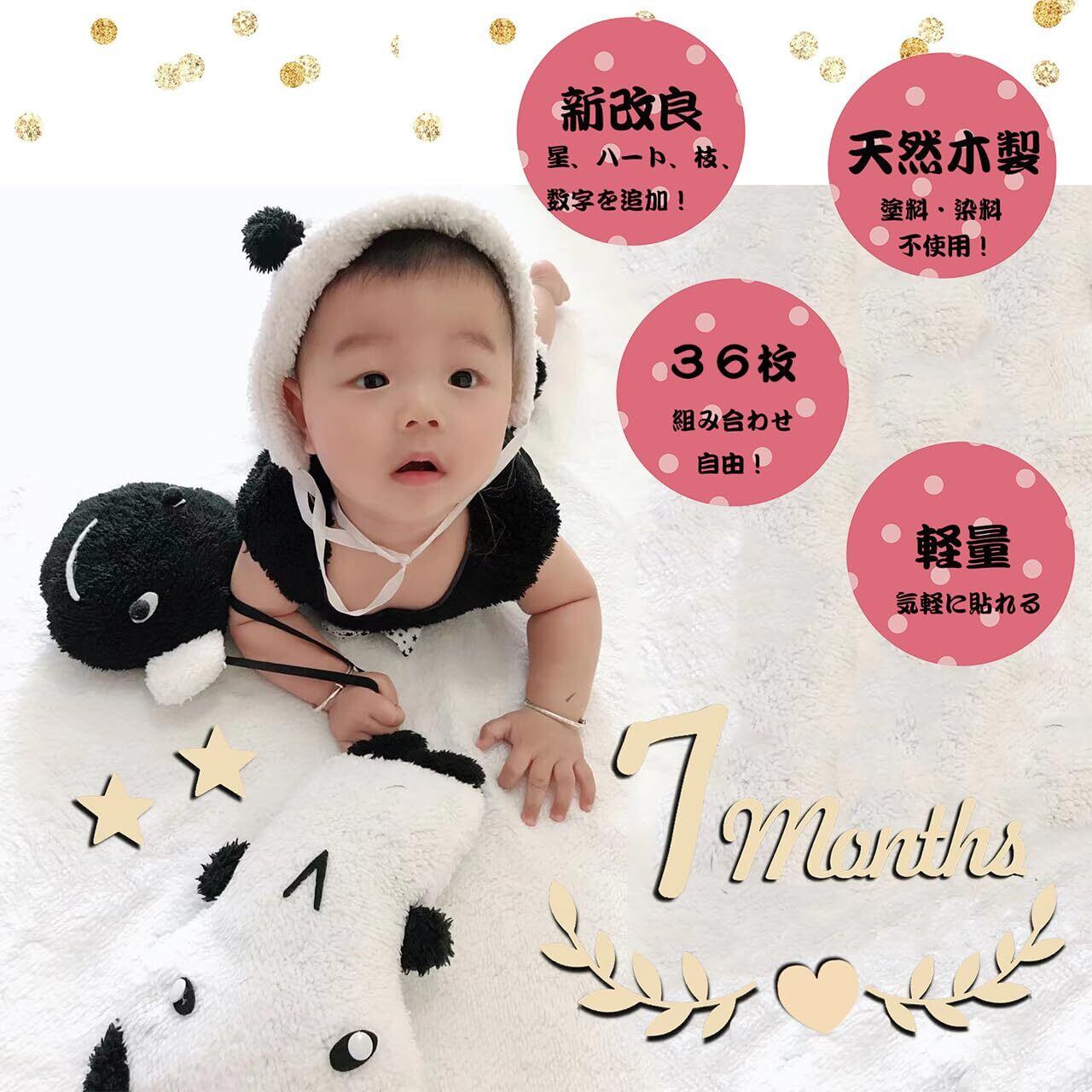 lollipopk 月齢フォト 天然木製 レターバナー マンスリーカード ニューボーンフォト 記念日フォト 成長記録 出産祝い 撮影用 寝相アート 月齢フォトグッズ ベビー用品 新生児 赤ちゃん 飾り付け (36枚 羽)
