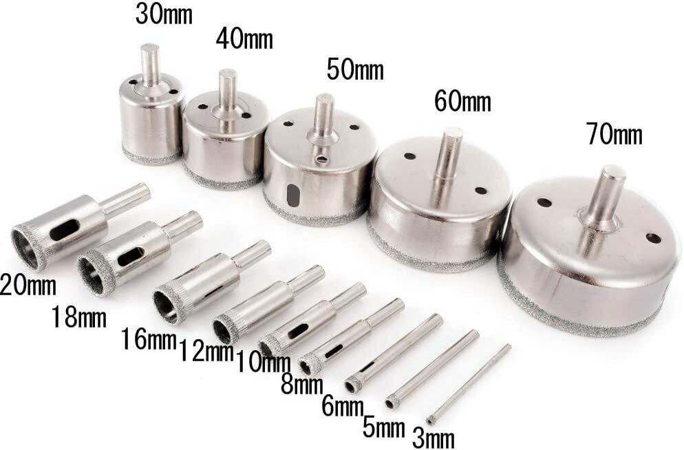 ガラス、タイル、レンガ、陶器、陶器、大理石 など正確な穴を作るための優れてます。先端にダイヤモンド粒子を電着させていますので、石やガラスのような非常に硬い材料に掘削することができます。