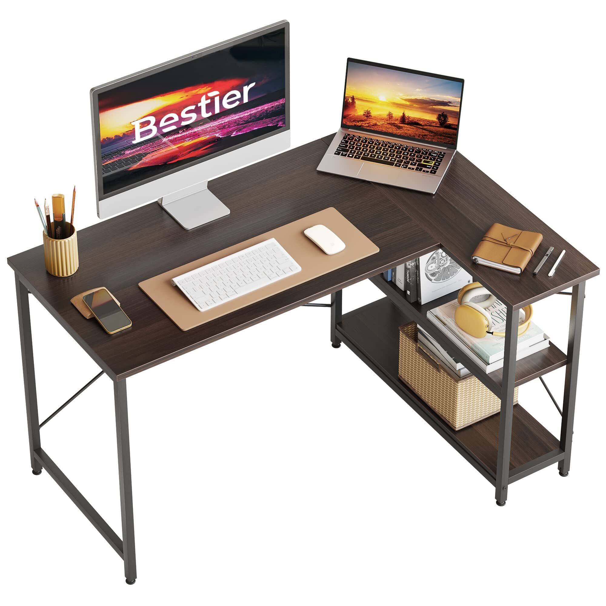 Bestier l字デスク 幅107cm パソコンデスク 机 pcデスク L字型 学習机 勉強机 右棚左棚 つくえ 棚板高さ調節可能 コーナーデスク ラック付きデスク 収納 在宅勤務 組立簡単 ブラウン