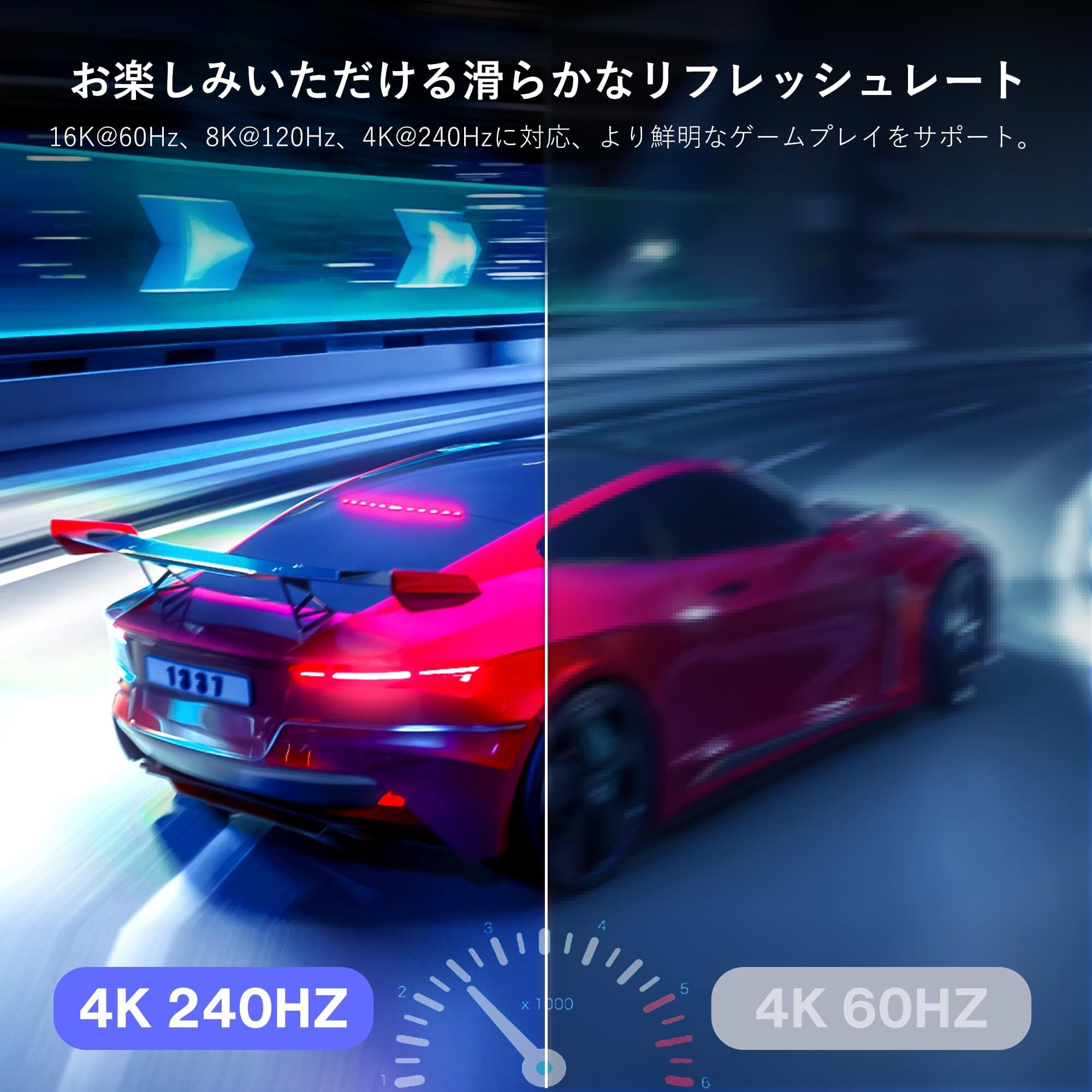 【最新の16K DPケーブル】:IVANKY 16K Displayport ケーブル 2.1 は、40Gbpsの帯域幅、DSC 1.2、ARC、FEC、および HDR10 対応で、最大16K@60Hz/8K@60Hz 4K@240Hz/165Hz/144Hzをサポートします。よりスムーズな映像信号と音声信号を双方向で伝送することができます。