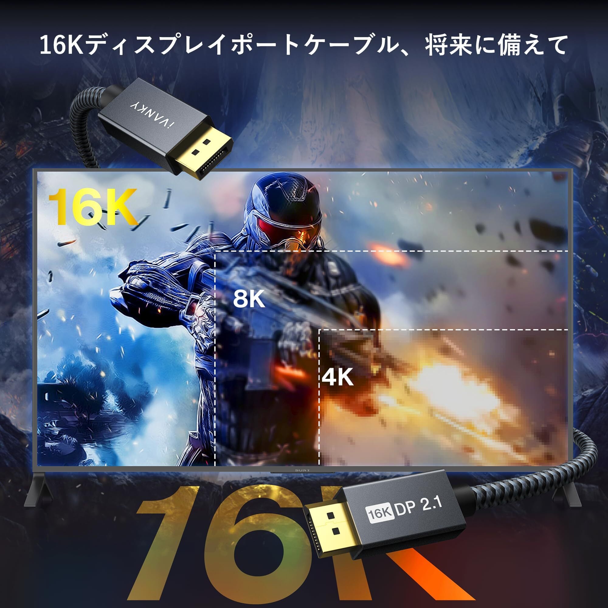 iVANKY 16K Displayport ケーブル 2.1規格【DPケーブル 3M】16K@60Hz/8K@60Hz 4K@240Hz/165Hz/144Hz,ディスプレイポート ケーブル 最大40Gbpsハイスピード、HDR/DSC / 1.2a / FreeSync&G-Syncなどに対応 DP 2.1ケーブル
