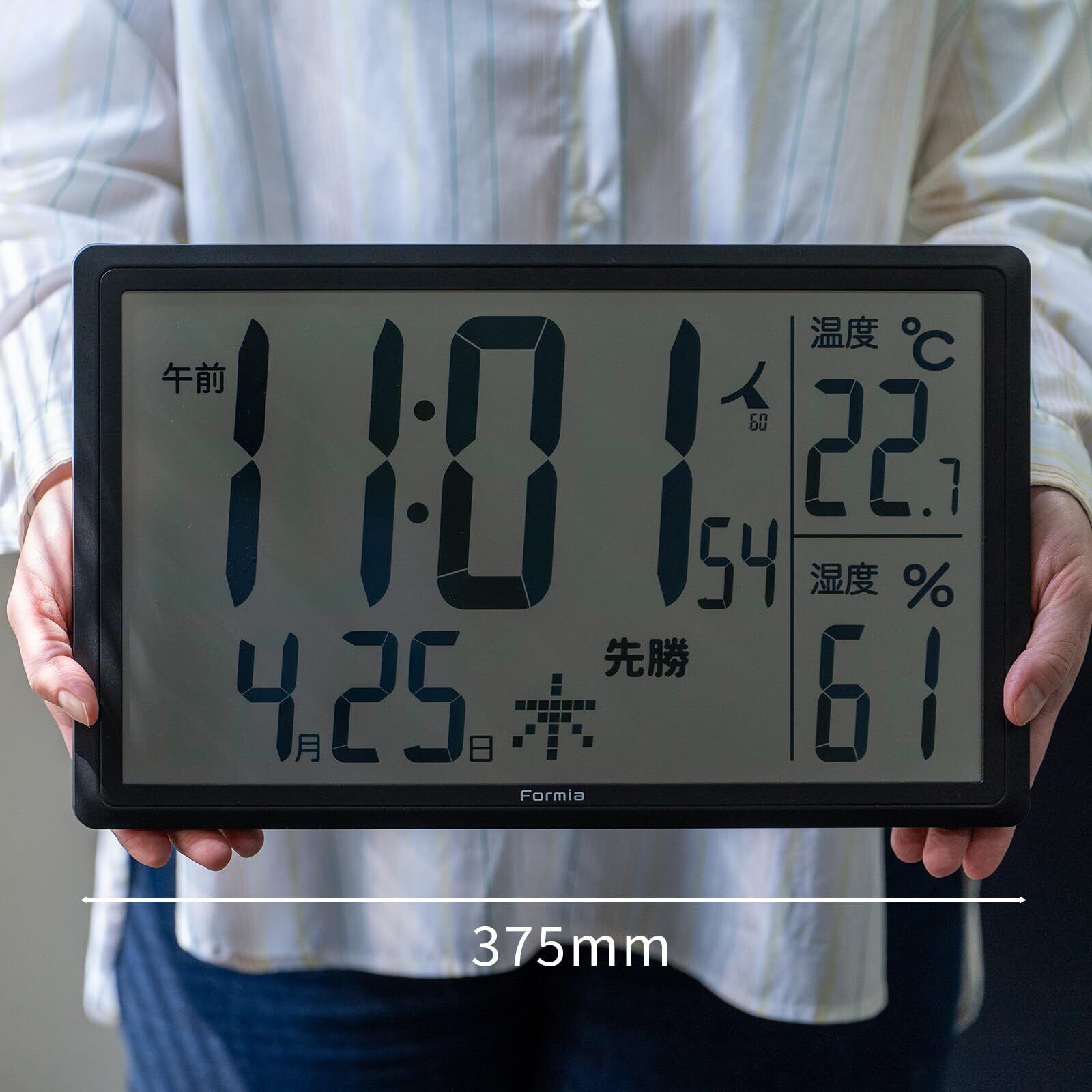 Formia(フォルミア) 電波 デジタル時計 大画面 電子カレンダー 温度計 湿度計 温湿度計 日付 時報 置き掛け兼用 卓上 保土ヶ谷電子販売 ブラック HWC-017RC