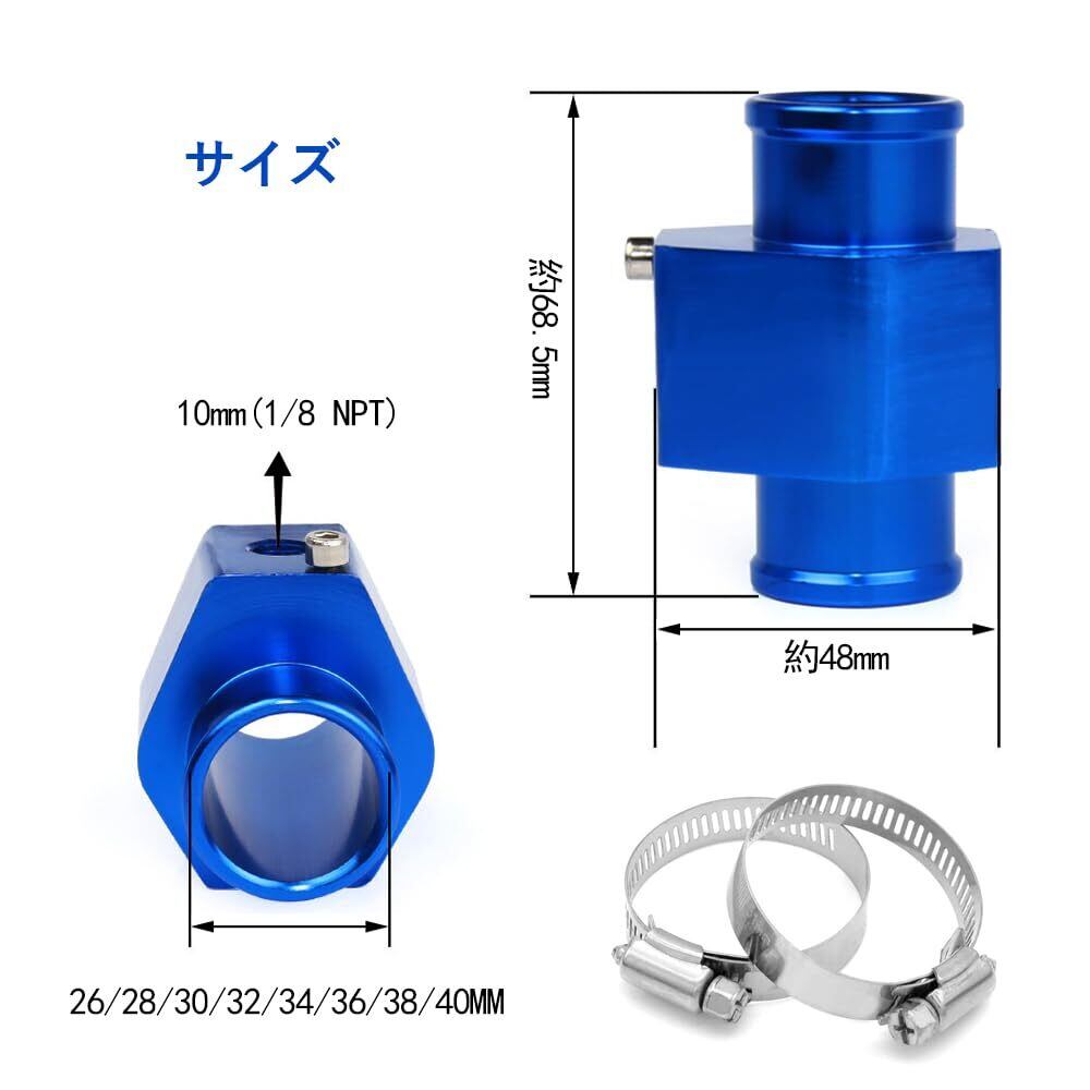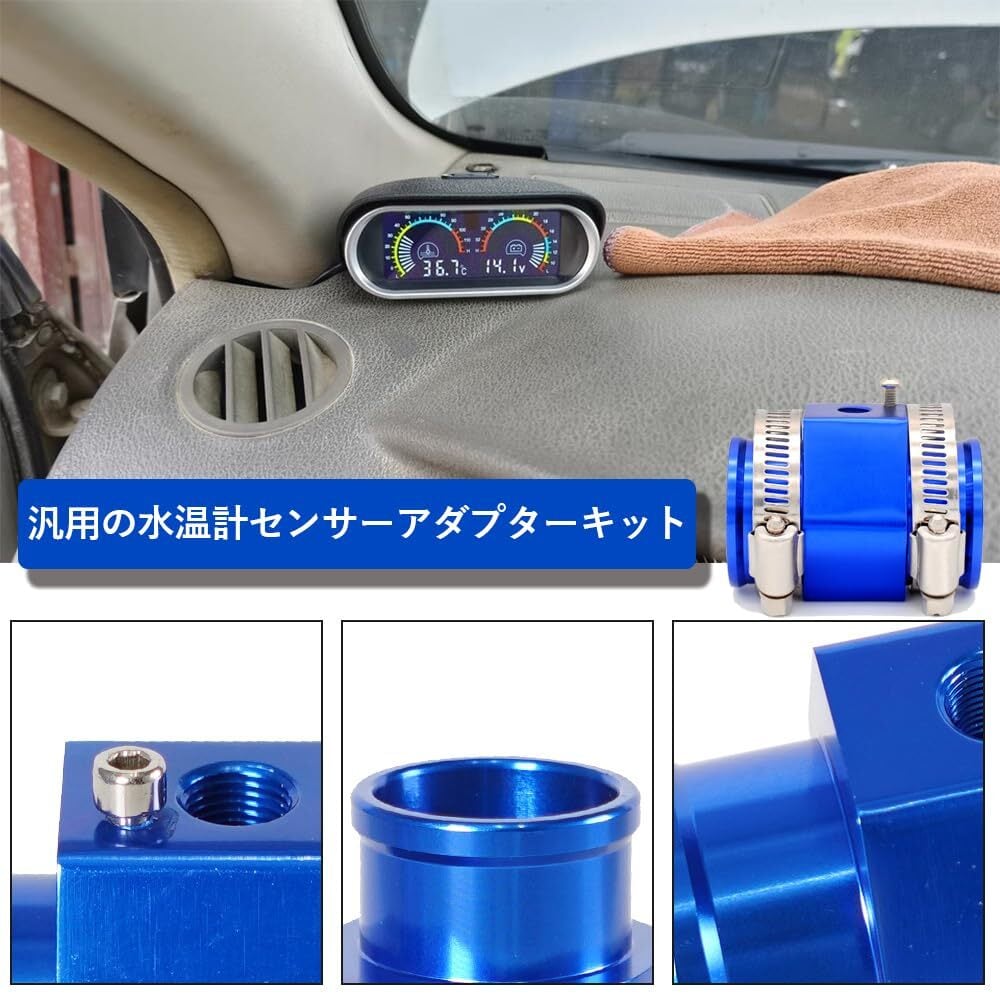 DFsucces 水温センサー 汎用 アタッチメント 水温計 アタッチメント 水温計用センサーアダプター 水温継手パイプ クランプ付き アルミ合金材質 温度センサー 水温度センサー (ブルー 26mm)