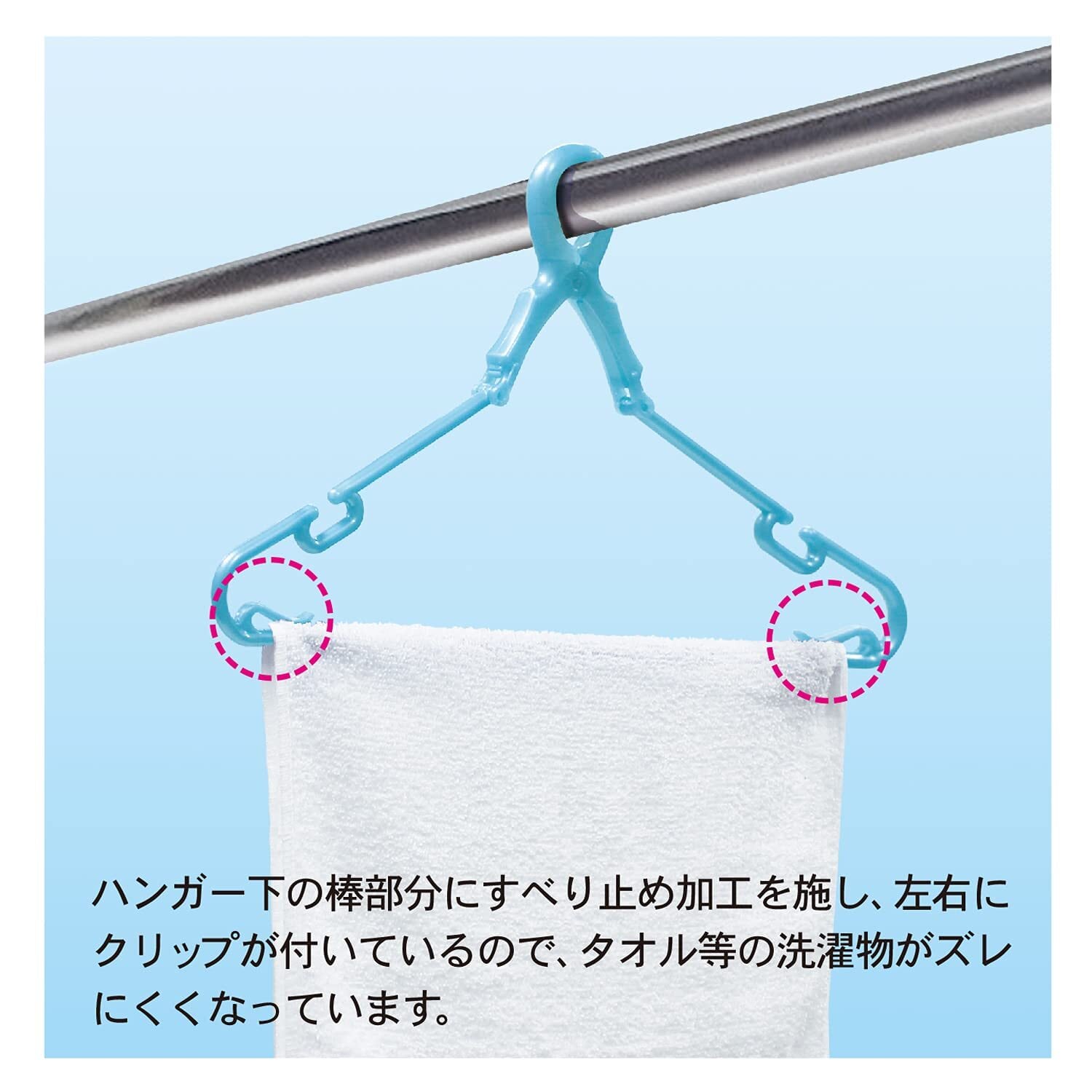 【便利なフックやすべり止め付き】アームに肩ひもホールがついているので、肩紐が細いキャミソールやタンクトップなども滑り落ちることなく干せます。スカートやボトムスなどを掛けられるフックも付いています。ハンガーの底部のバーは、すべり止め加工されているので、タオルやズボンをバーに掛けて干しても、ズレにくくなっています。