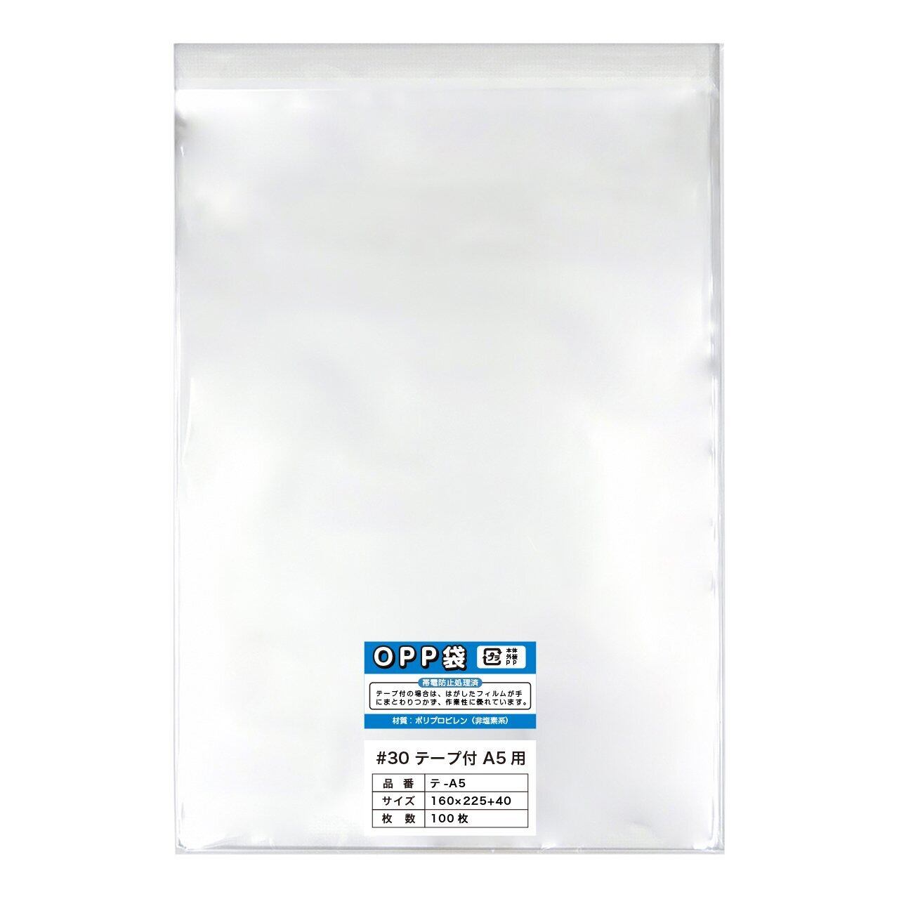【100枚】OPP袋 A5用テープ付き 30ミクロン厚(標準)160x225+40mm【国産】
