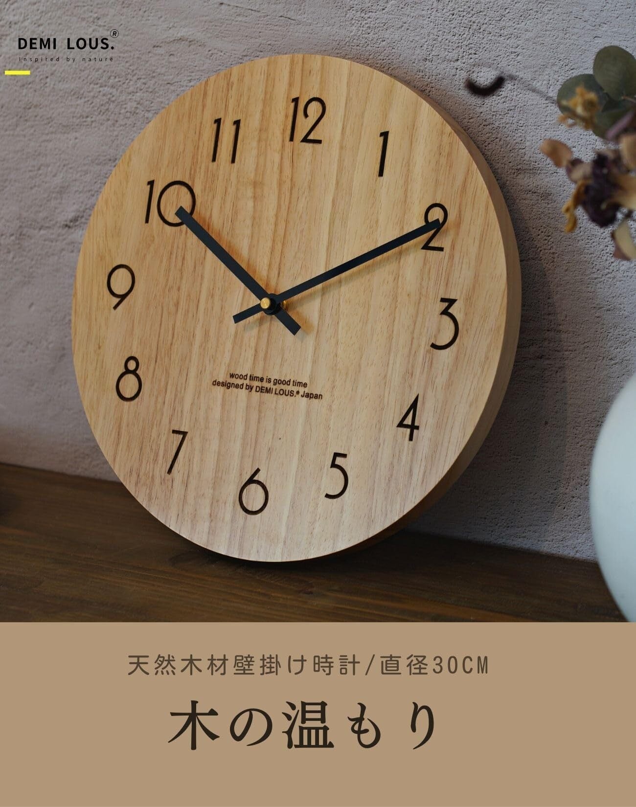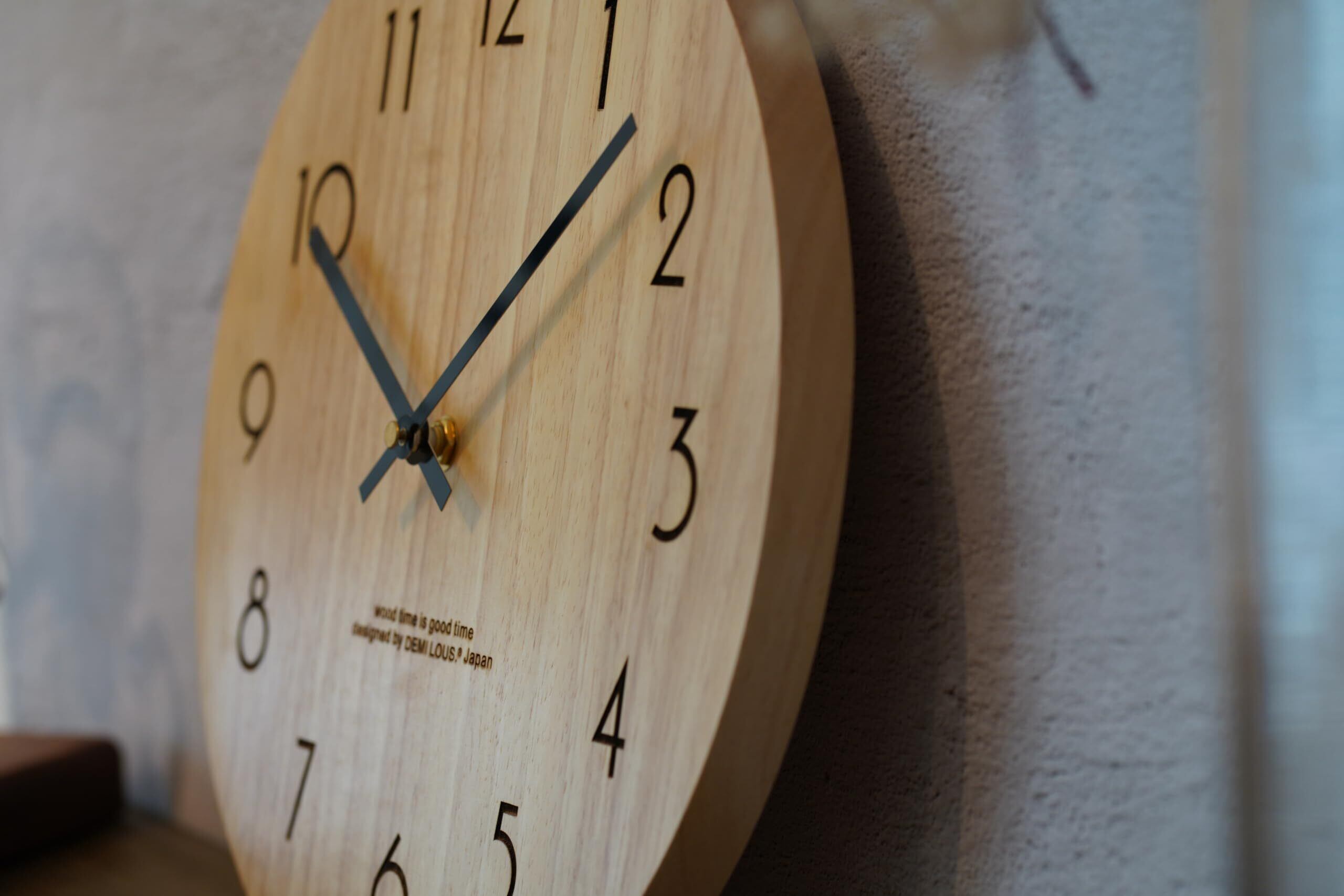 壁掛け時計 天然木製 30cm おしゃれ アナログ 静音 ムーブメント インテリア リビング 寝室 オフィス デザイナーズ DEMI LOUS正規品 (定番デザイン)