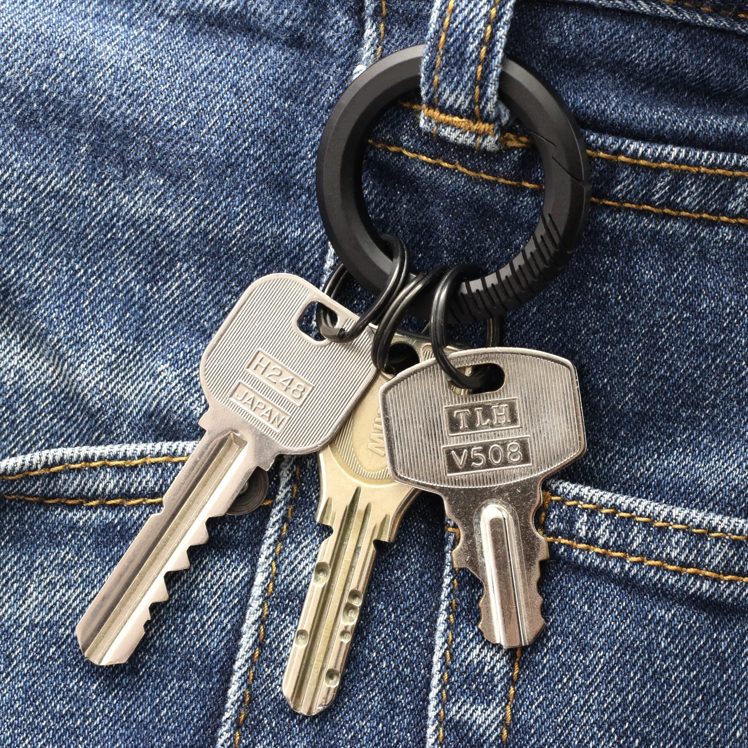 【ベルトループやキーリングにワンタッチで取り付け】ベルトループやキーリングにぶら下げやすいカラビナ形状で、鍵を付けたリングの取り付け取り外しもワンタッチで可能です。