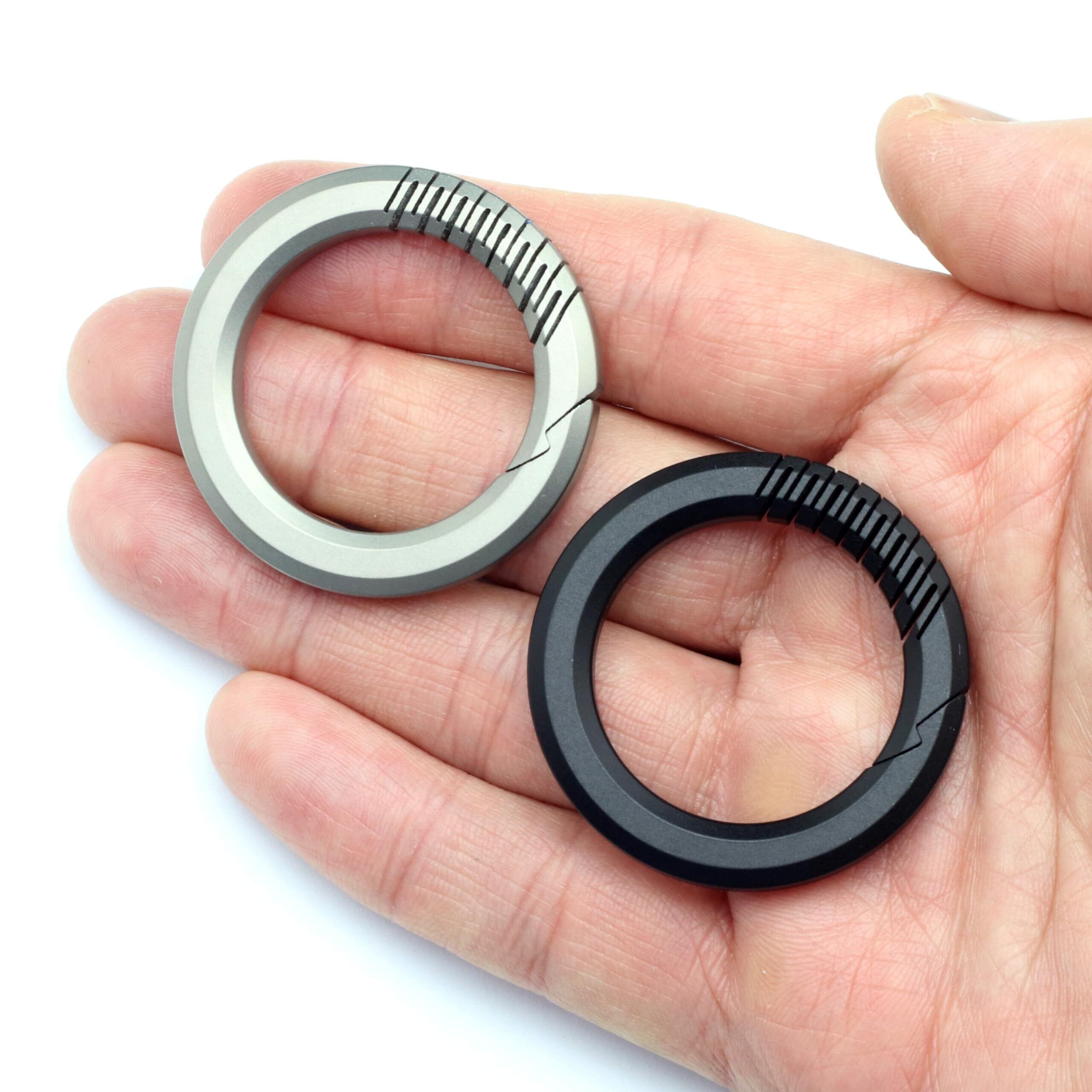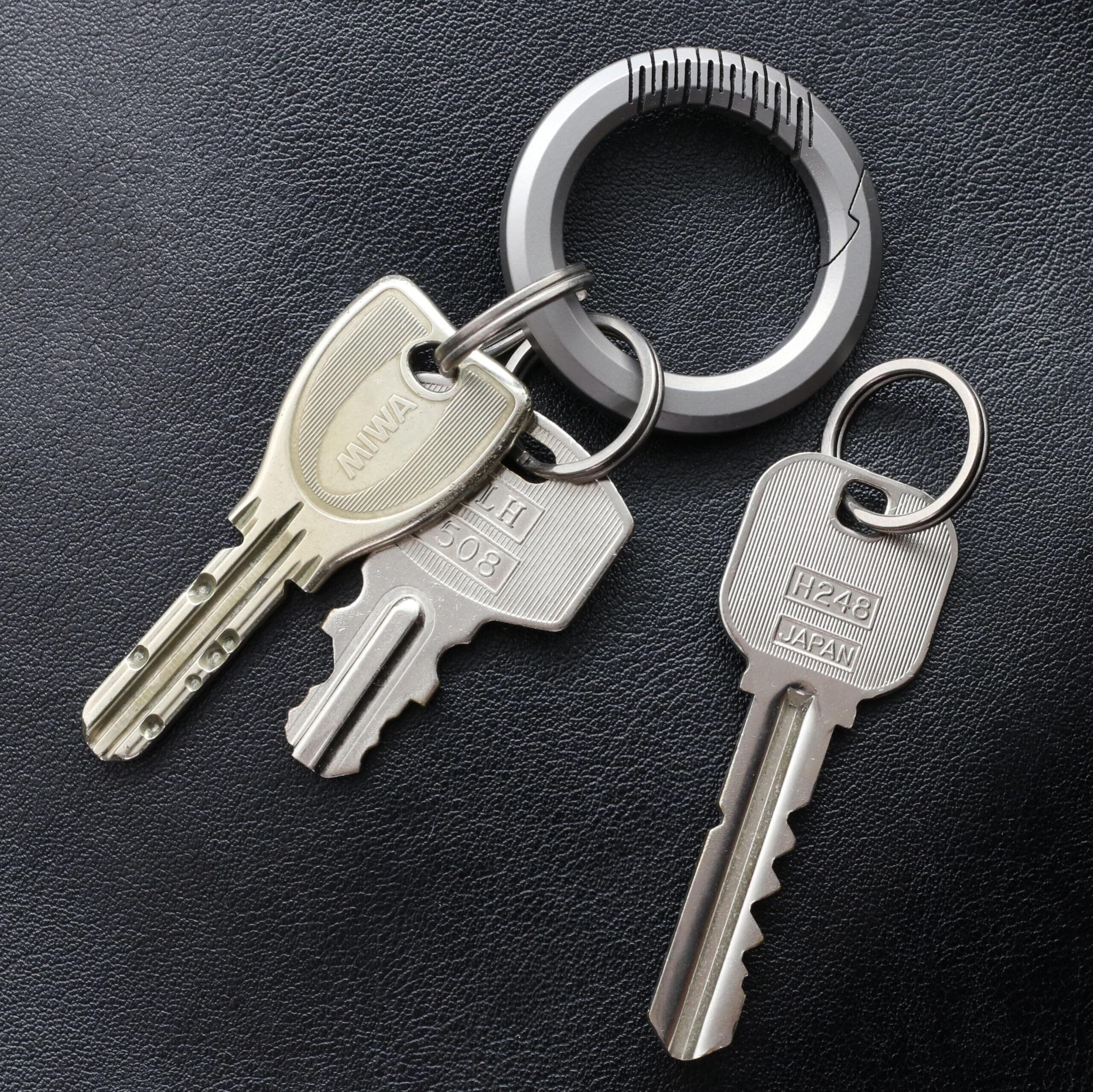 [TUNUKE] チタン キーホルダー ブラック リング おしゃれ カラビナ キーリング 丸 円形 小型