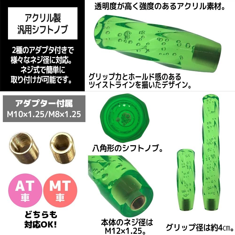 [FUPUTWO] シフトノブ クリスタル 汎用 八角 バブル ツイスト キラキラ 透明 カスタム (15cm, グリーン)