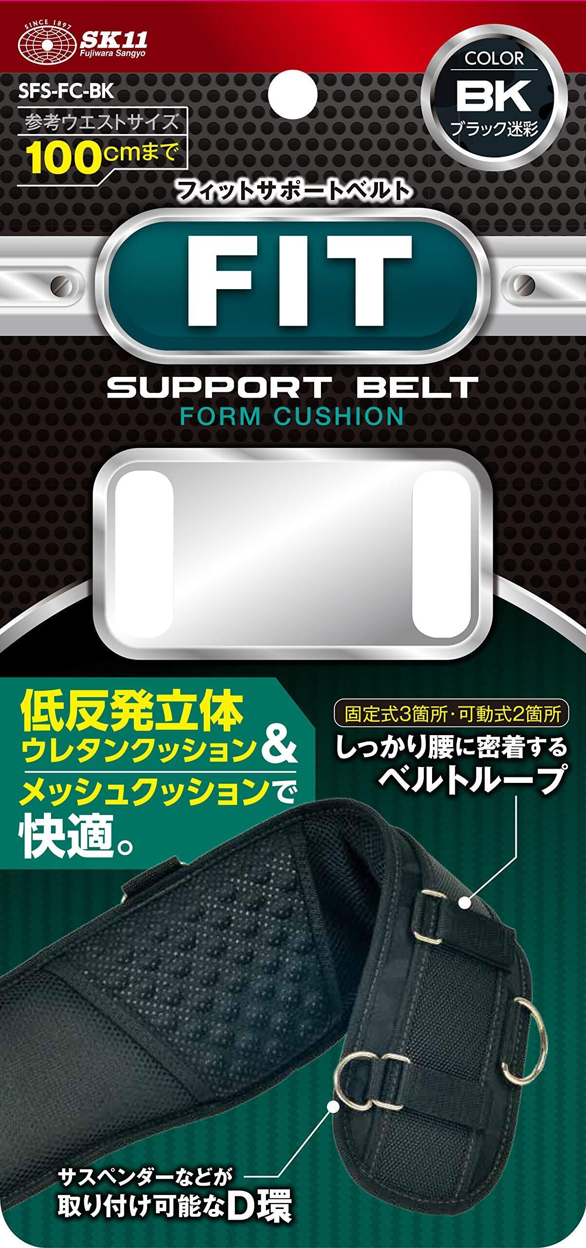 SK11(エスケー11) フィットサポートベルト 低反発立体ウレタン SFS-FC-BK 長さ800mm ブラック迷彩 D環付き