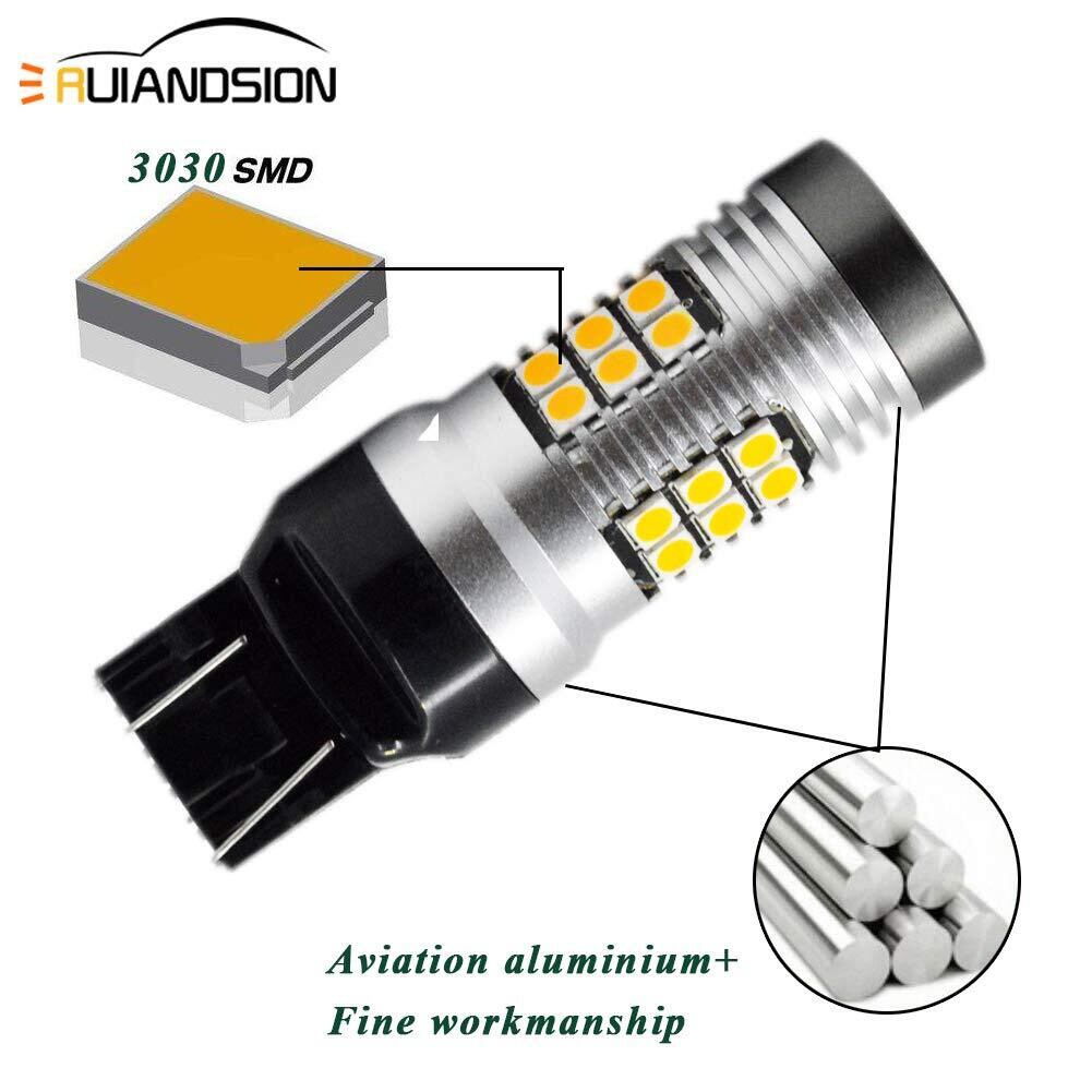 Ruiandsion 2個入り 7443 7440 LED 電球 T20 ウェッジ12-24V 3030 30SMD チップセット ターンシグナルライト、テールライト、ブレーキライトLED電球、イエロー/アンバー