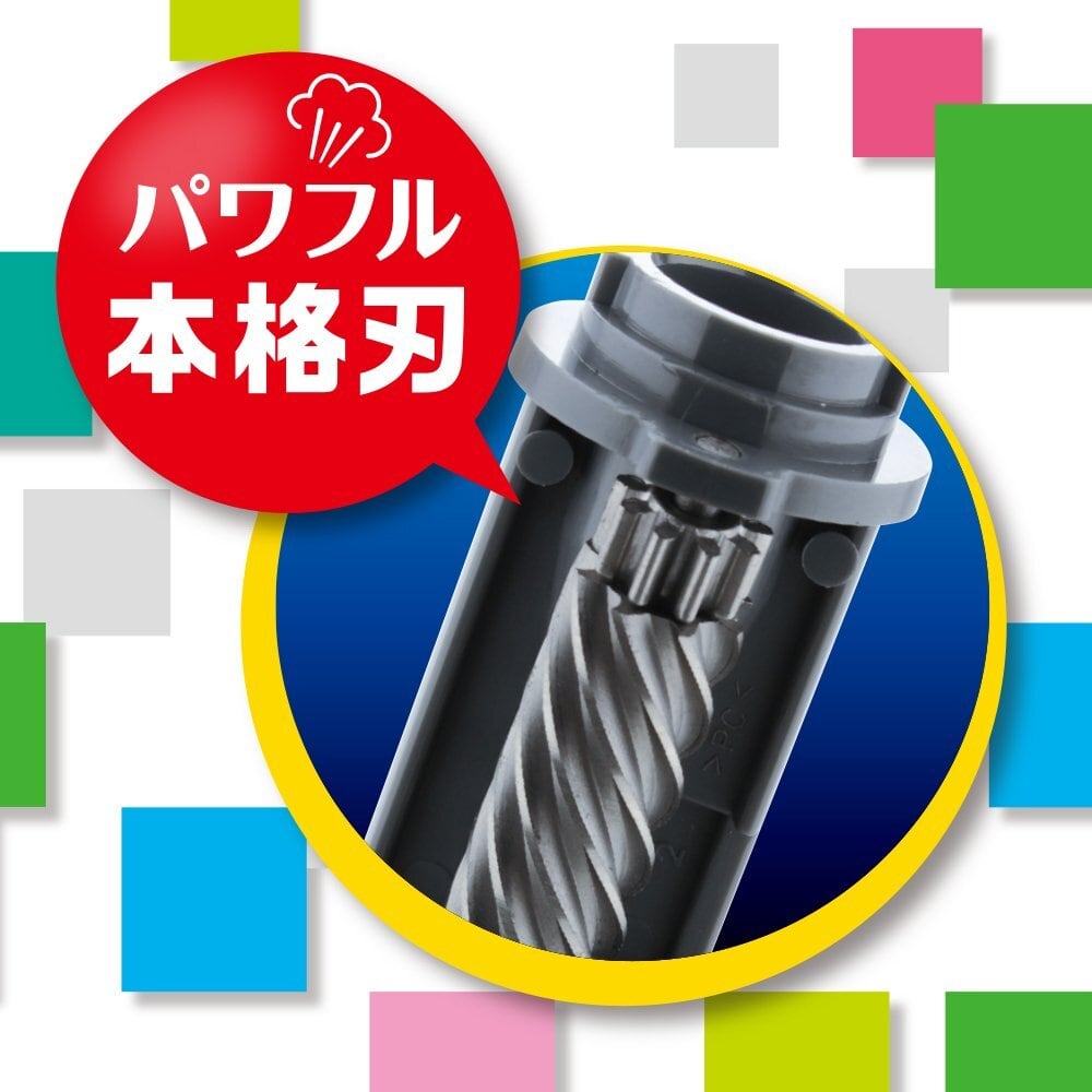 お手軽でありながら、本格らせん刃とアルカリ電池4本の駆動力で、パワフルな削りを実現しました。