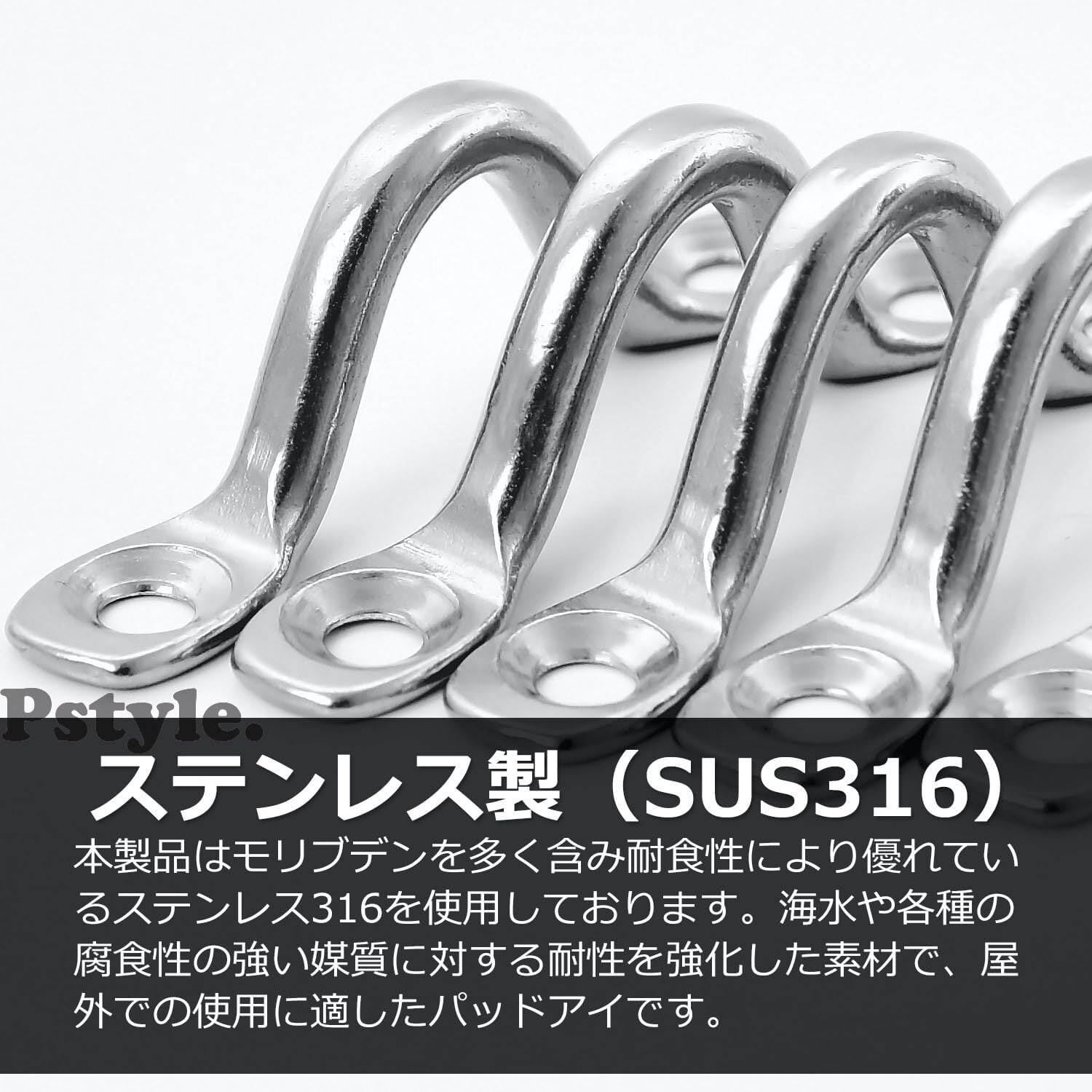 Pstyle. パッドアイ アイプレート フック ステンレス 316 金具 PST-056 (5mm-16個セット)