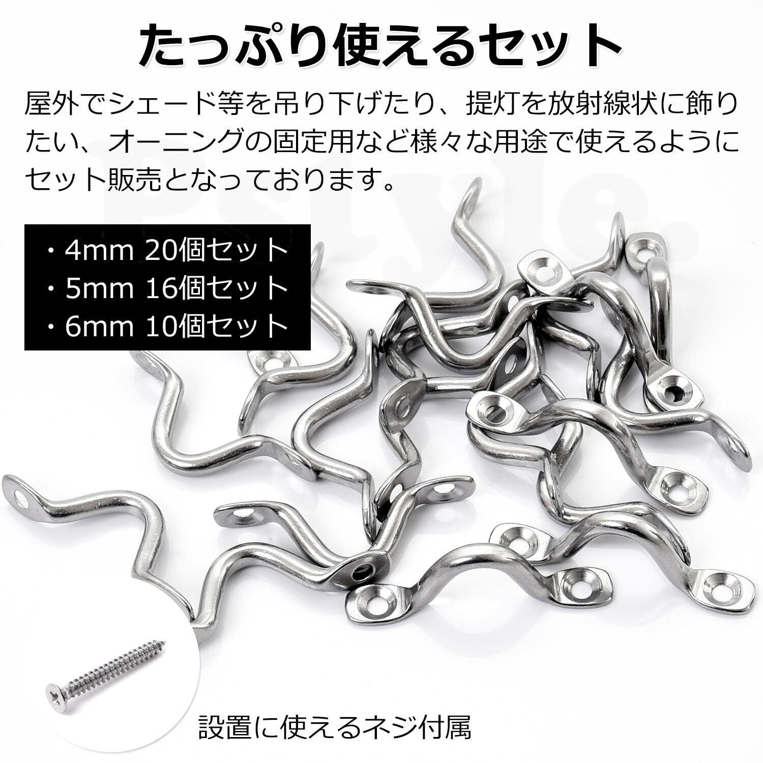 【たっぷり使える20個セット】 屋外で日よけ、シェード等を吊り下げたり、提灯を放射状に飾りたい、オーニングの固定用、天井の吊り下げ金具としてなど、様々な用途でお使いいただけます。