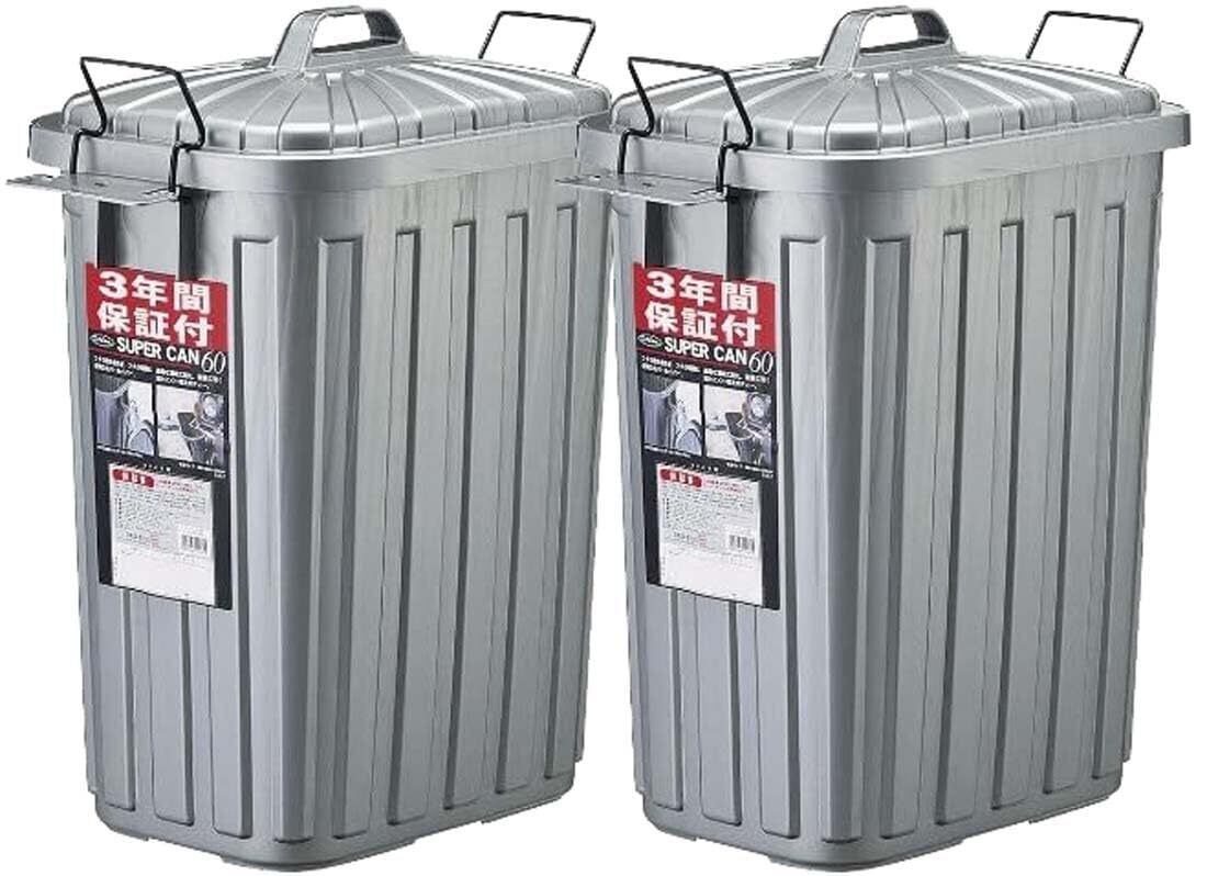 【限定】 岩崎工業 スーパーカン ゴミ箱 角型 ロック式 59リットル 2個セット 屋外 頑丈 丈夫 シルバー 幅36×奥行55×高62cm LSX408 日本製