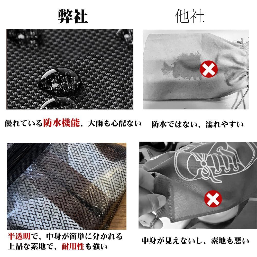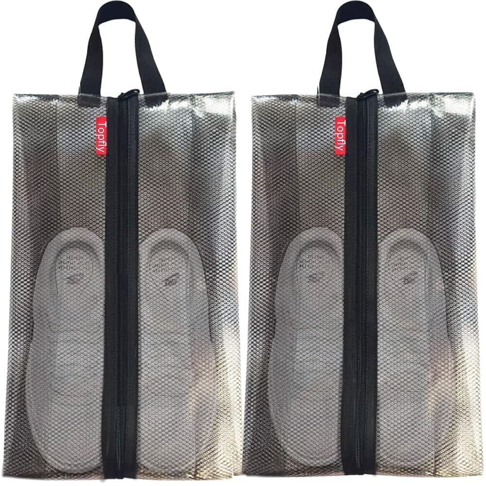 Topfly シューズケース 2パック シューズバッグ メッシュスポーツ ゴルフ バスケ 靴袋 半透明 超軽量 防水防塵 靴入れ 衣類入れ シューズ袋 シューズ入れ 旅行 部活用 アウトドア 収納バッグ (ブラック、43*25*10cm)…