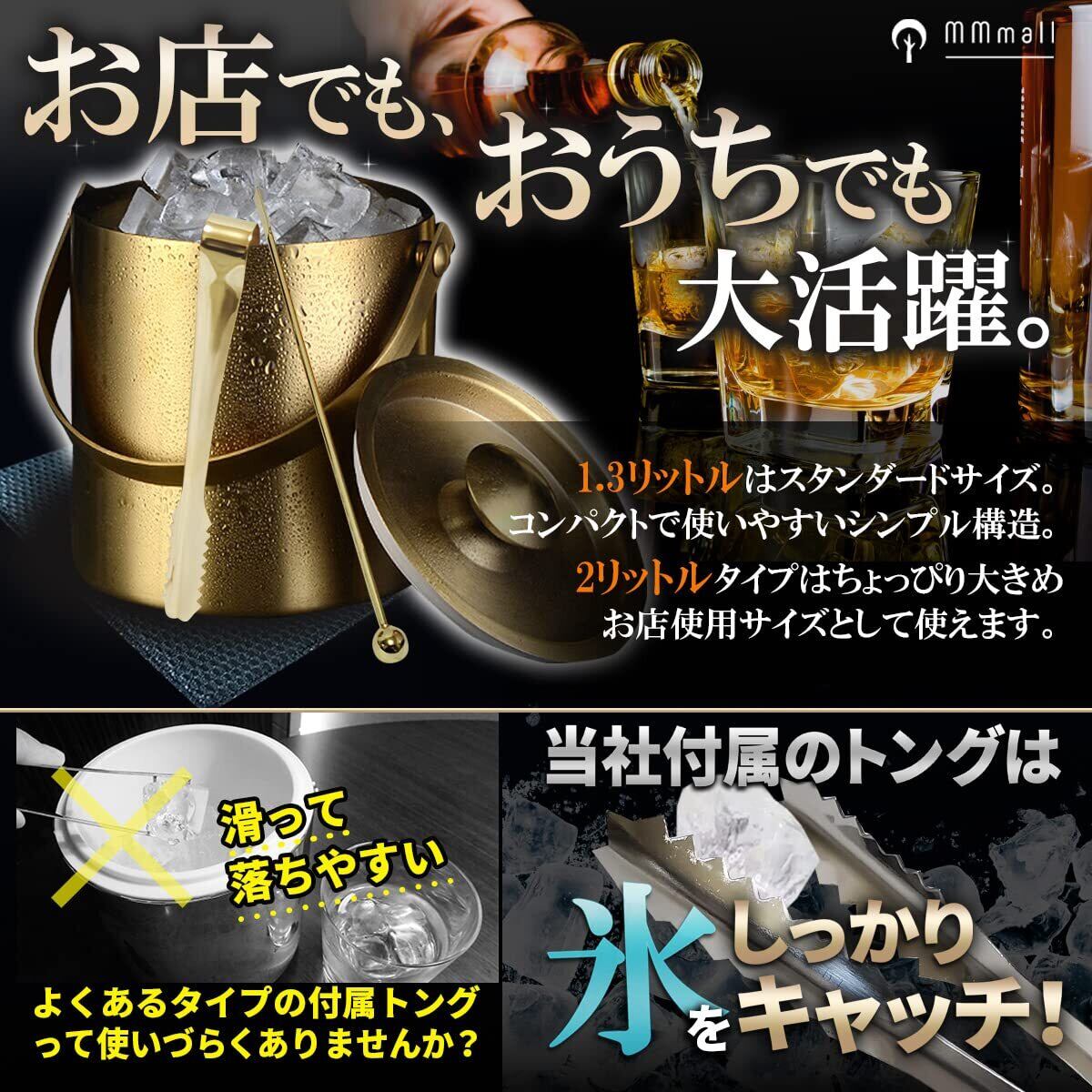 MMmall アイスペール 溶けない 二重アイスペール ステンレス 日本製アイストング マドラー付セット (シルバー, 1.4ℓ)