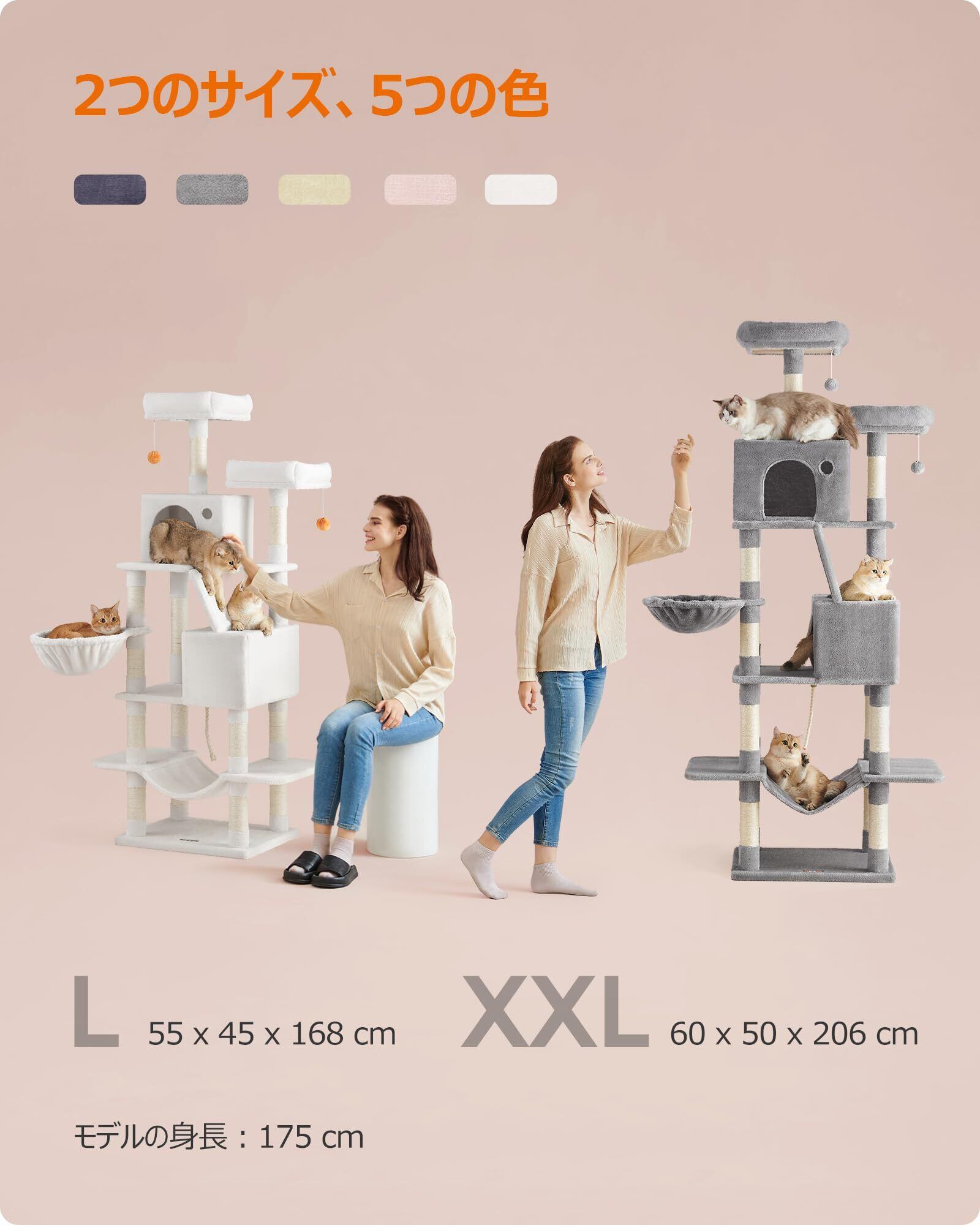FEANDREA キャットタワー 多頭飼い 猫タワー スリム 安定感 据え置き 人気 ハンモック運動不足 転倒防止 高さ168cm PCT165P01