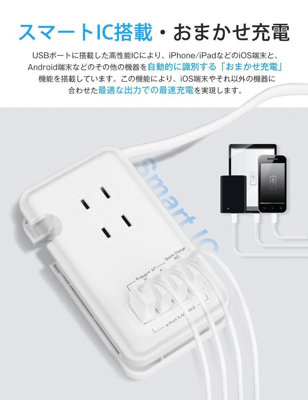 【 pse認証済み USBコンセント】一体式ACプラグ電源コードがacアダプターに付き、ソケットに収納出来るように仕上げました。 4つのUSBポートは最大出力5.4Aで、iPhoneやタブレットなどを素早く充電できます。