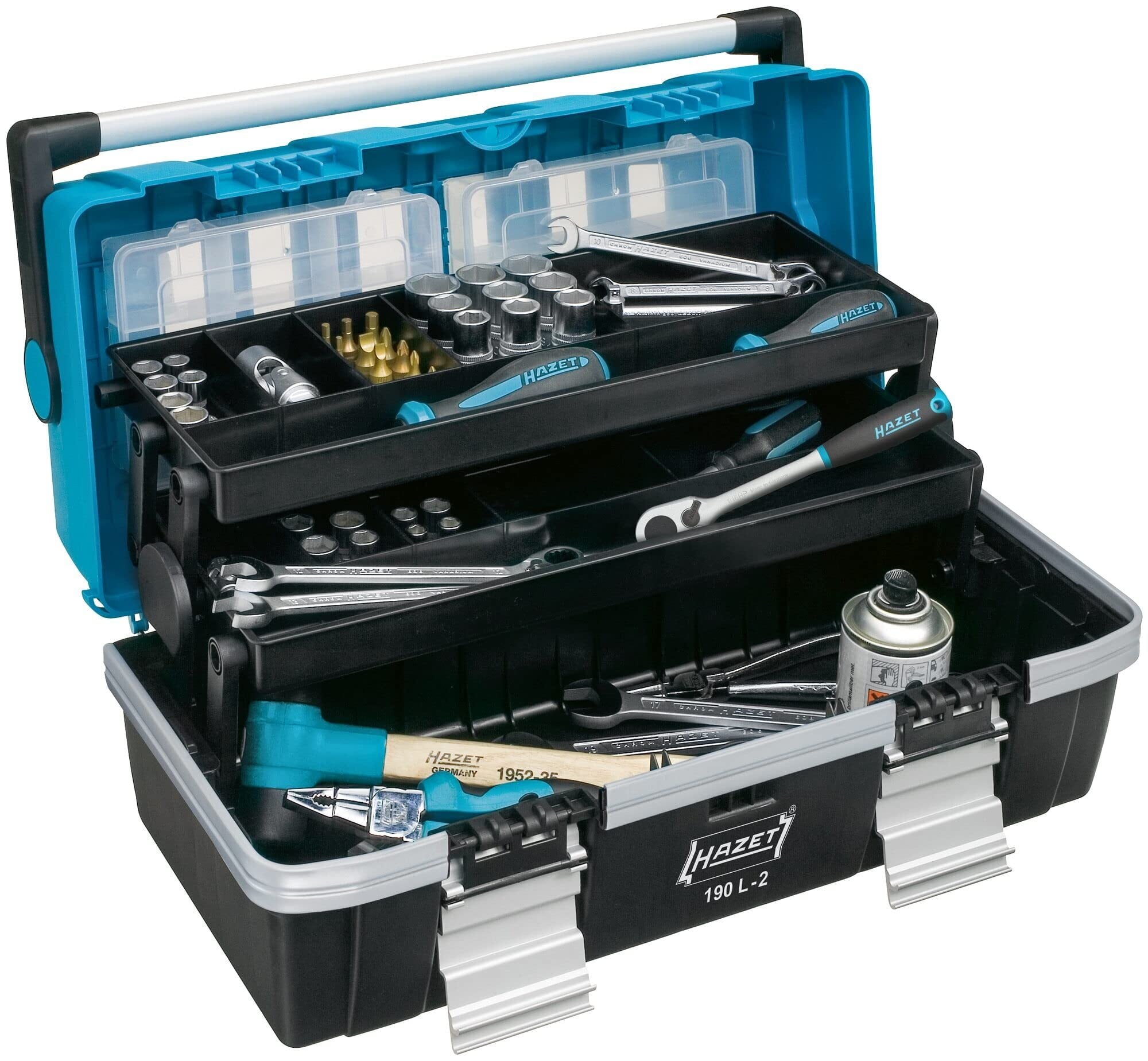 HAZET (ハゼット) プラスチック工具箱/ツールボックス 190L-2 | 工具収納ボックス | 26.4 x 22.8 x 47.4 cm | DIYユーザーやプロフェッショナル向け収納ケース