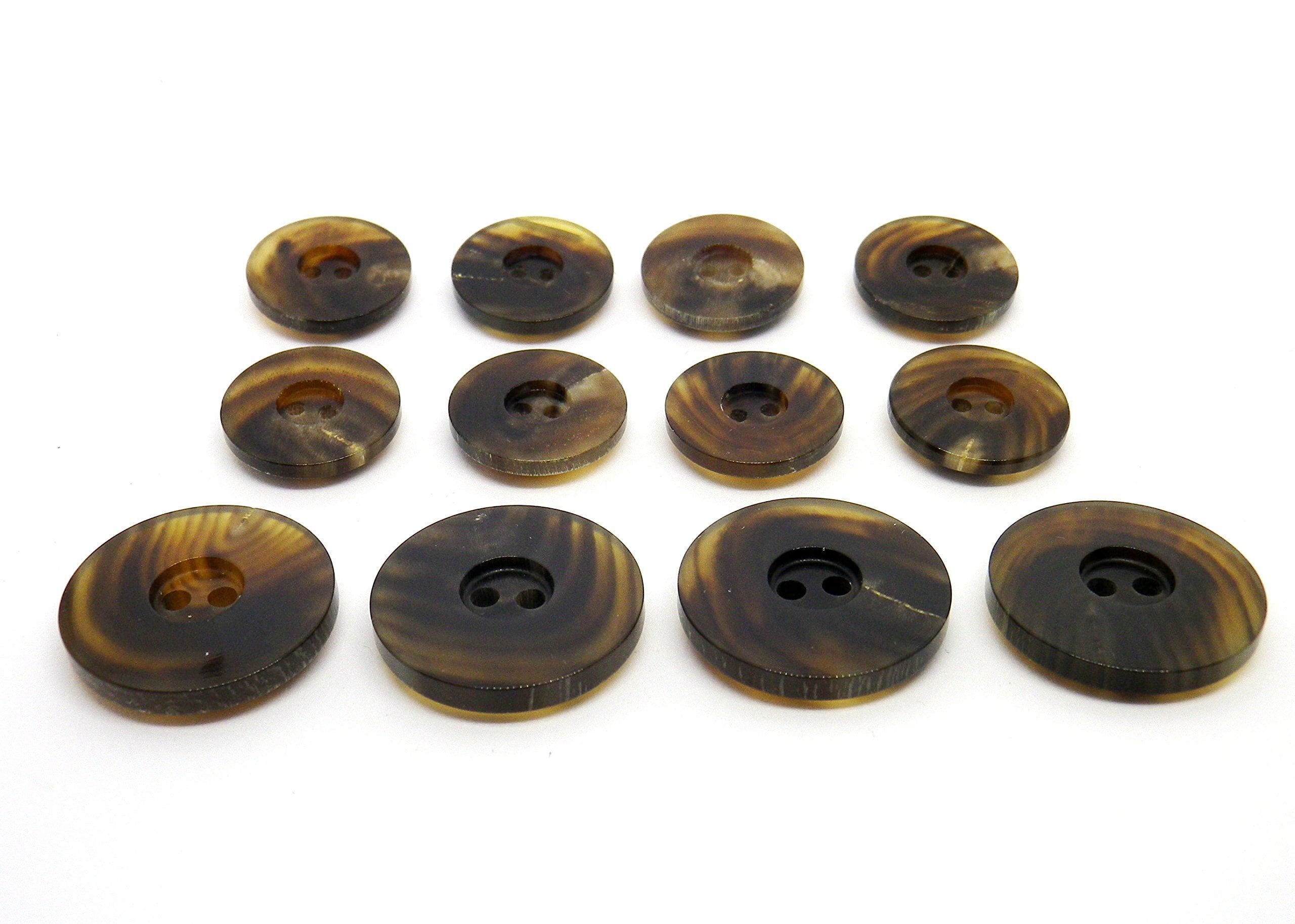 本水牛ボタン 穴の細い2穴 イタリア型 2色,4サイズ有 1着分セットもあります BH-1型 (茶, 15mm8個・20mm4個 スーツ1着分セット)