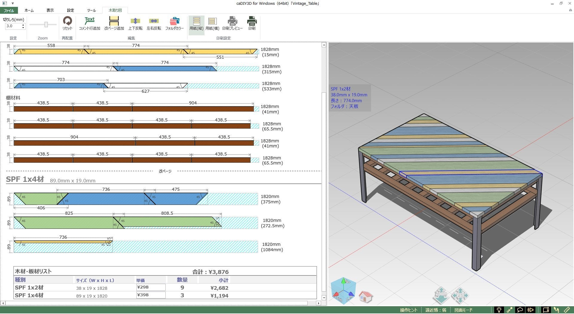 ・自動で切りしろ込みの木取り図、材料費一覧を作成←新機能!