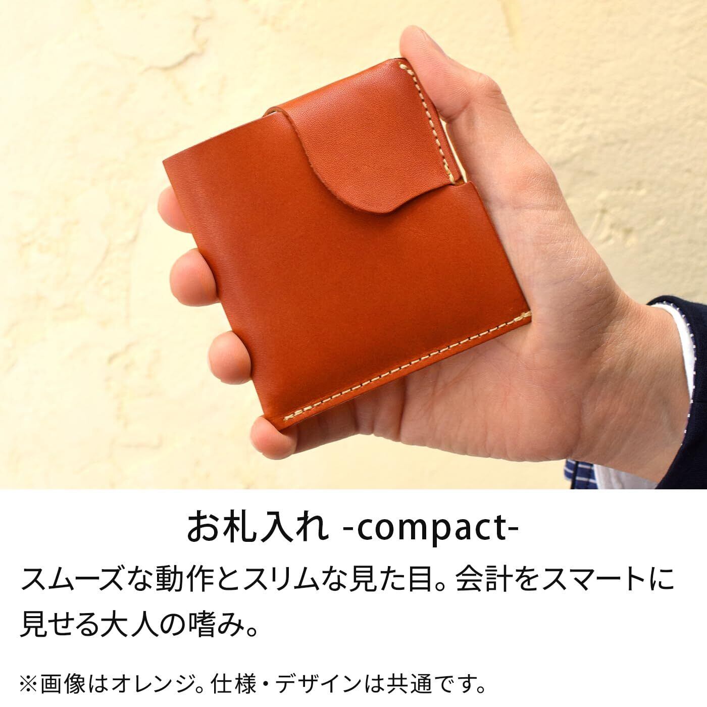 [HUKURO] 財布 二つ折り マネークリップ compact お札入れ 革 日本製 オレンジ