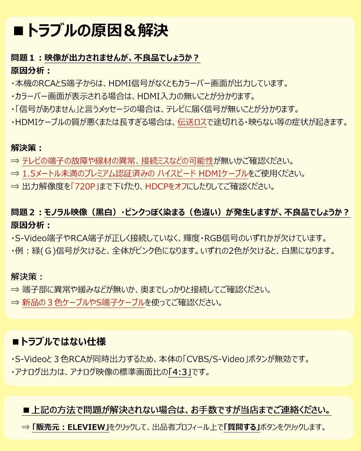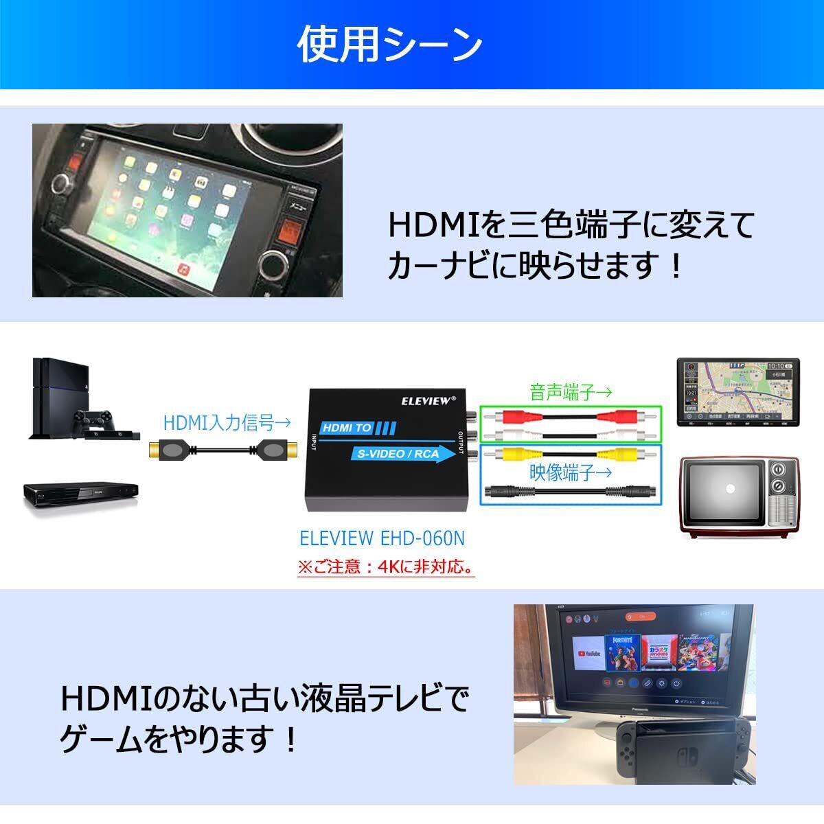 ELEVIEW HDMI to コンポジット/S端子 変換器 HDMI to RCA 変換 コンバーター (HDMI→3色端子+S-Video) 電源不要 1080P対応 PS4/Nintendo Switch/Fire TVに適用 AVケーブル&S端子ケーブル付き 日本語取扱説明書 バスパワー式 EHD-060N