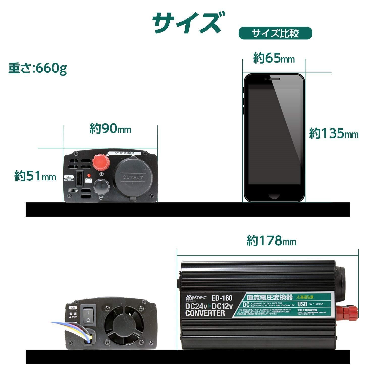 メルテック(meltec) 車載用 DCDCコンバーター デコデコ 3way(USB&アクセサリーソケット&陸式ターミナル) DC24V ソケット1口15A・USB1口1A 配線タイプ Meltec ED-160