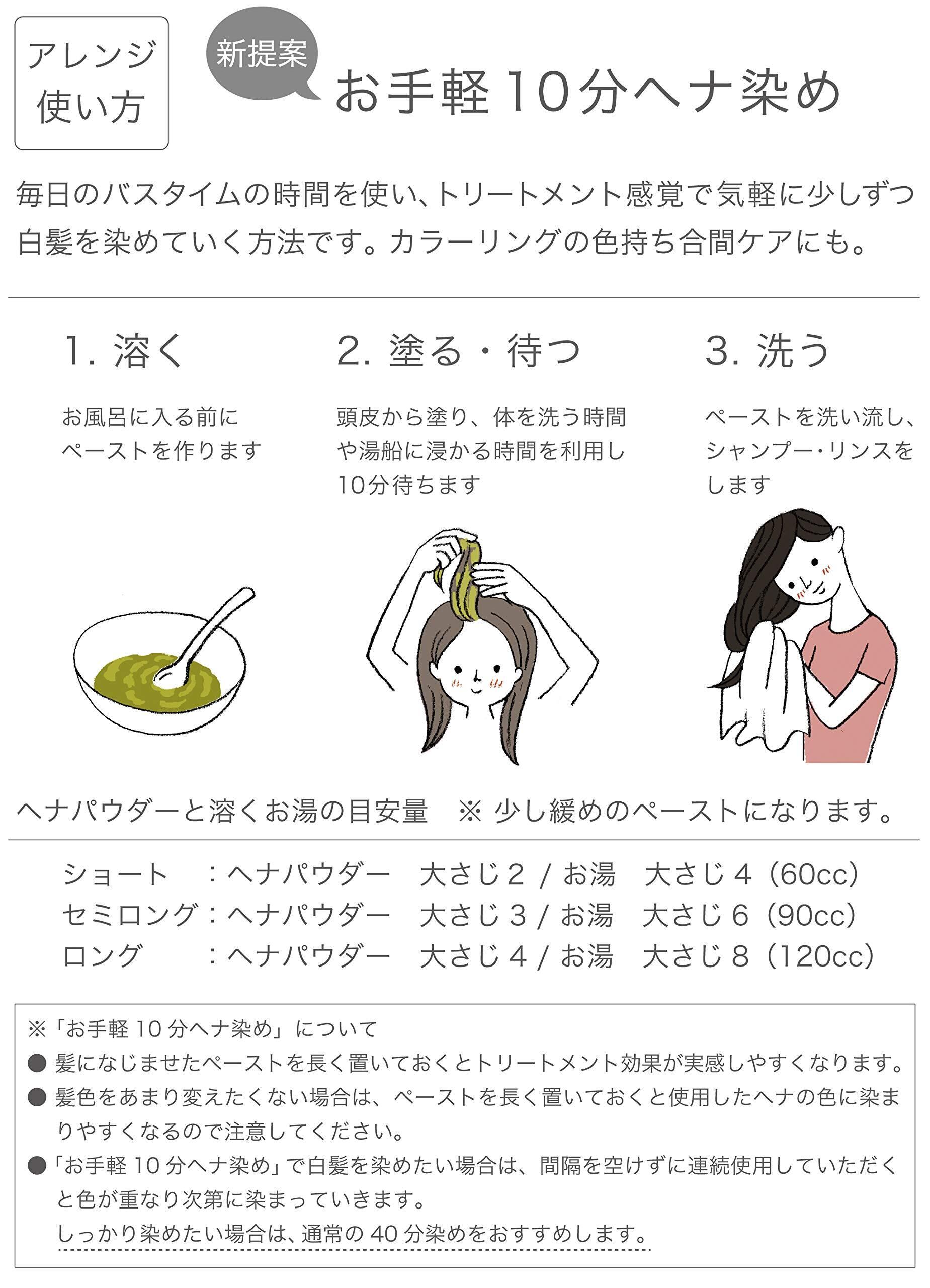 藍染めの長い歴史を持つ「木藍(インディゴ)」をヘナに加えた『ヘナ+木藍 黒茶系』。白髪が落ち着いた「黒茶系」に染まります(黒髪の色はほとんど変わりません)。