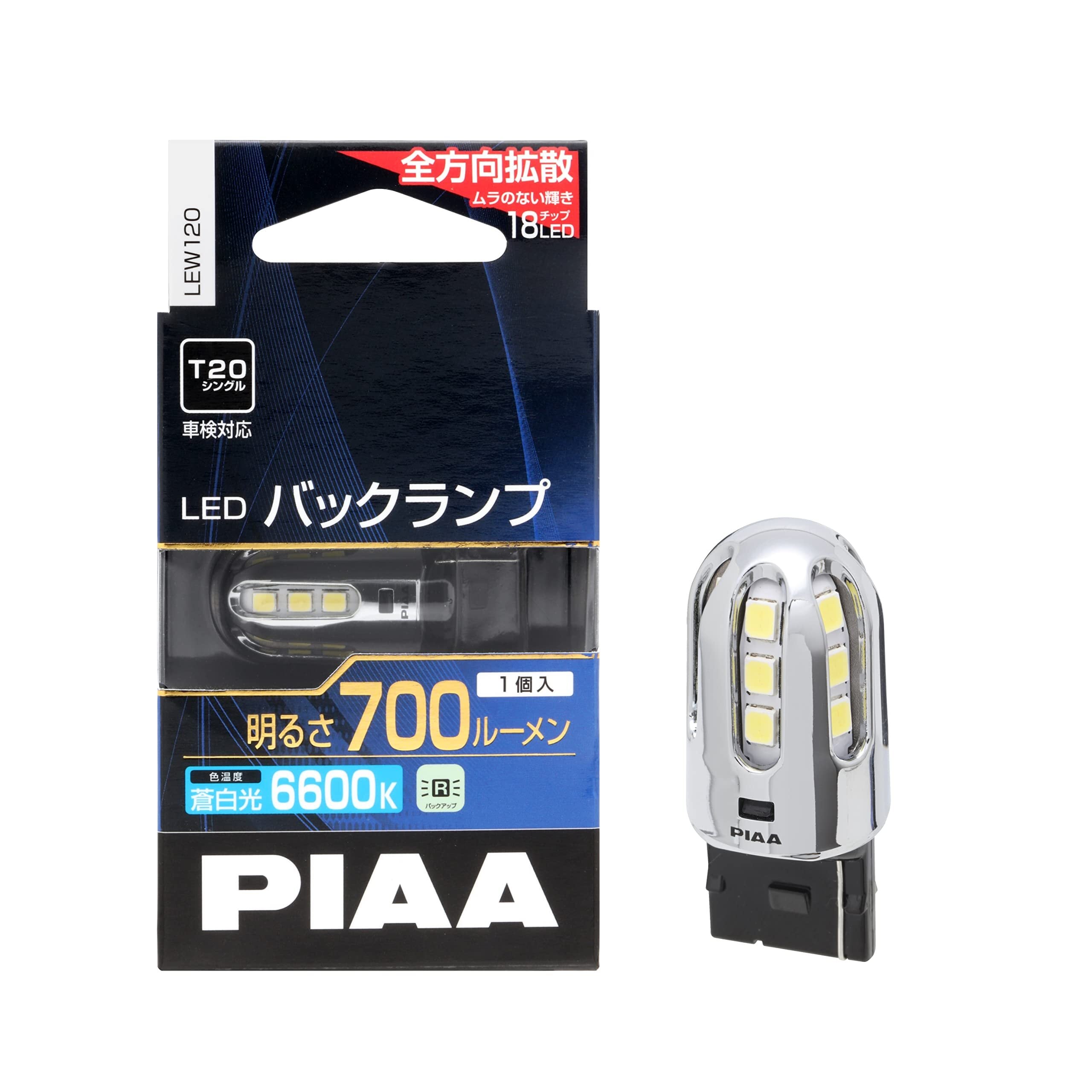 PIAA バックランプ/コーナリングランプ用 LEDバルブ T20 6600K 700lm 車検対応 1個入 12V/5.8W 定電流回路内蔵 全方向拡散18チップ LEW120