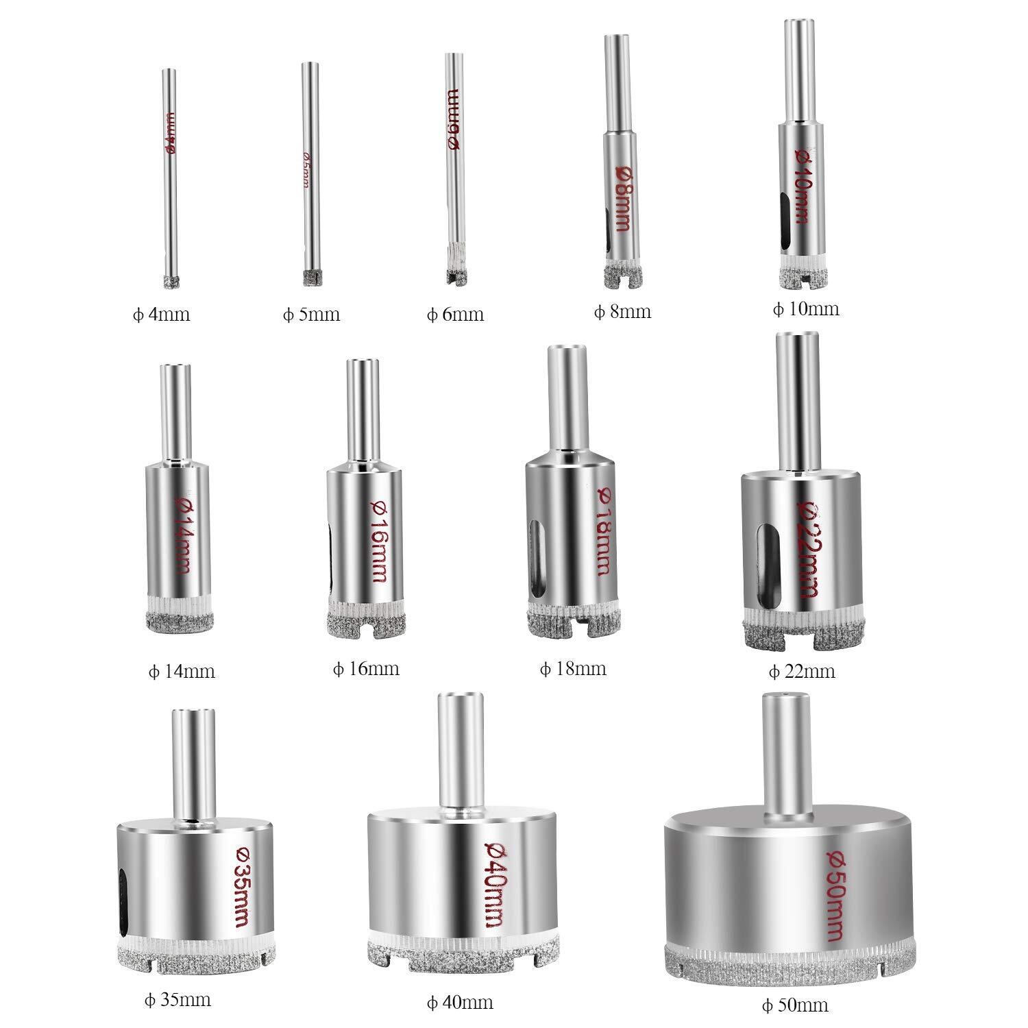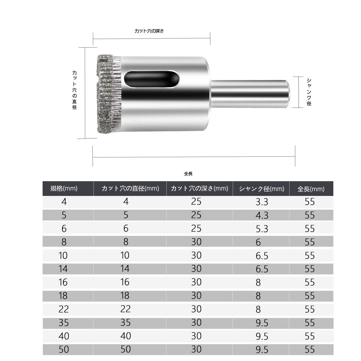 ダイヤモンドホールソー コアビット ガラス タイル 穴あけ 超硬 12本組 4mm 5mm 6mm 8mm 10mm 14mm 16mm 18mm 22mm 35mm 40mm 50mm