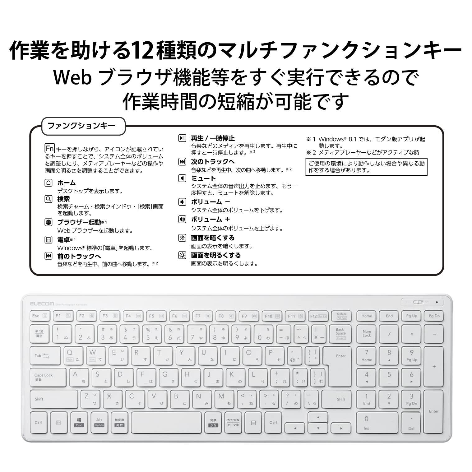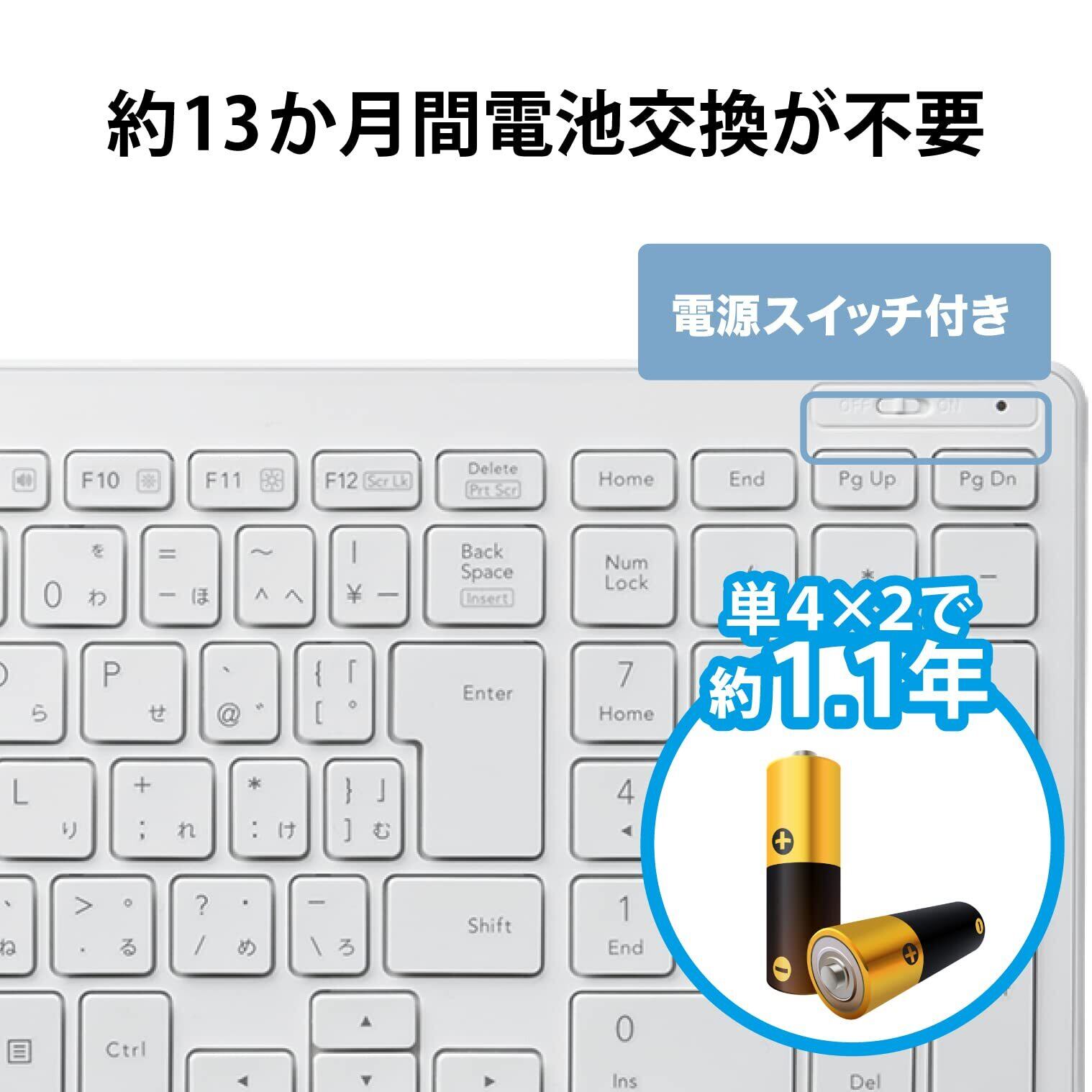 エレコム USB-A キーボード ワイヤレス (レシーバー付属) パンタグラフ コンパクトキーボード ホワイト TK-FDP099TWH