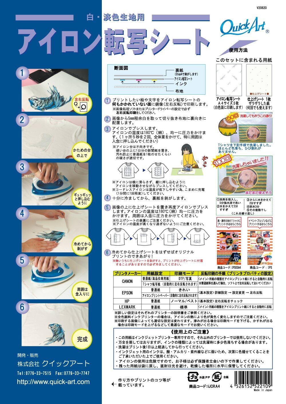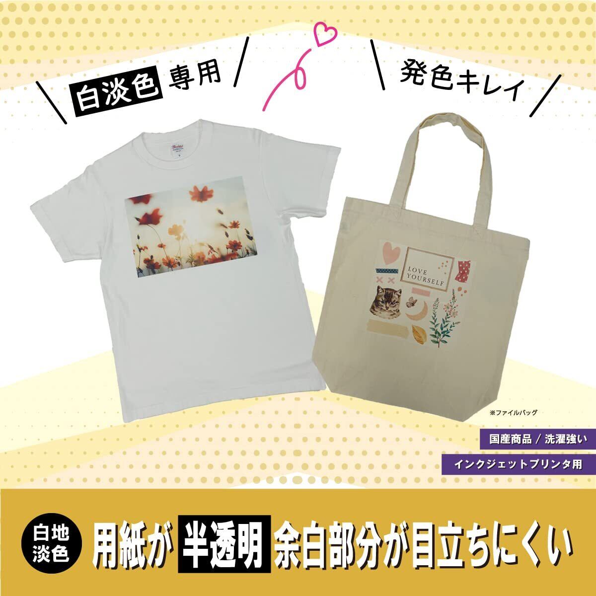 インクジェットプリンタと家庭用アイロンで、本格的なTシャツプリントができる、フルカラー向けアイロンプリントシートです
