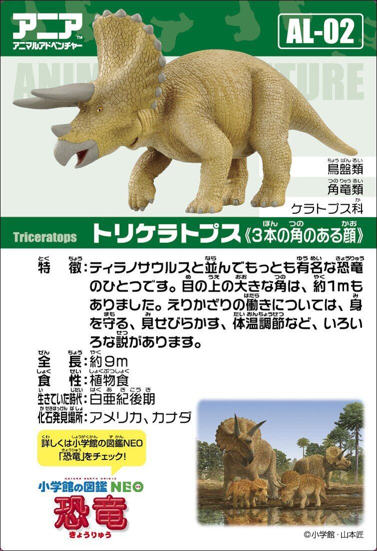 アニアに恐竜シリーズが登場!既存のアニアより一回り大きいラージサイズです。トリケラトプスは首が動きます。