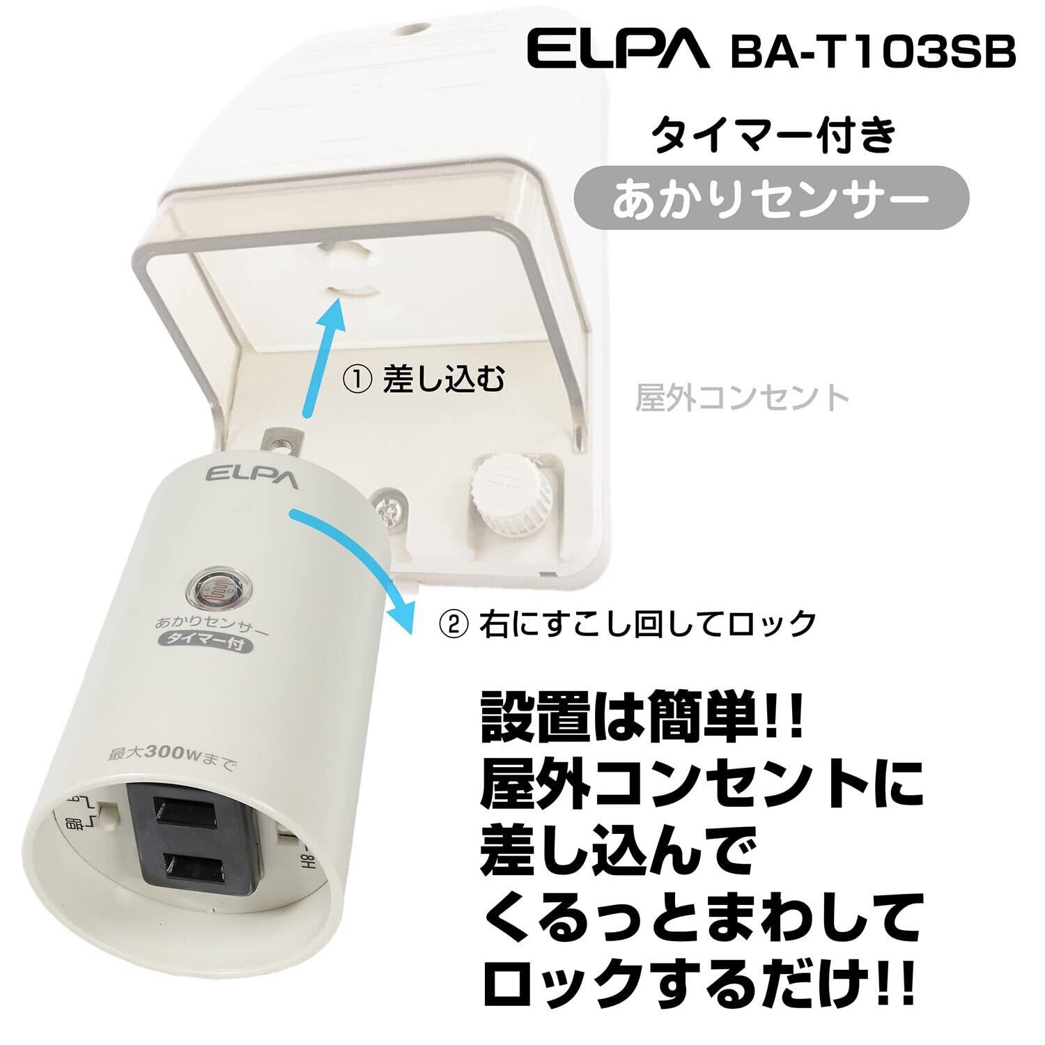 エルパ (ELPA) あかりセンサースイッチ 照明 トラッキング防止カバー AC100V 50Hz/60Hz 防水 BA-T103SB
